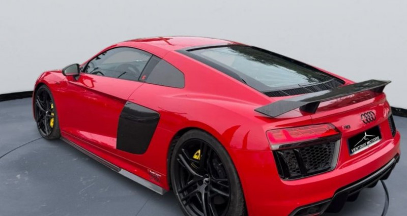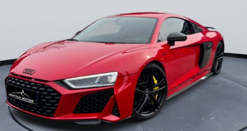 VENTOUX MOTORS VOUS PROPOSE A LA VENTE NOTRE AUDI R8 5.2 FSI QUATTRO 5204CM3 540CV 113590€ OPTIONS ET ÉQUIPEMENTS : Audio - Télécommunications : - Apple carplay - Apple carplay en option - GPS - Interface Bluetooth - Prise USB et AUX-IN - Système audio Audi Sound System - Système de navigation MMI Conduite : - Aide au démarrage en côte - Carte main libre - Essuie-glaces automatiques avec capteur de pluie - Limiteur de vitesse - Pack Sport - Régulateur de vitesse Extérieur : - Audi Magnetic Ride (suspension pilotée) - Audi Parking System Plus (aide au stationnement avant/arrière) - Caméra 360 (Surround View) - Caméra de recul - Diffuseur arrière laqué noir - Feux de jour à LED - Jantes alliage 19 pouces - Pack Aluminium extérieur - Phares bi-Xénon adaptatifs - Radars de stationnement arrière - Radars de stationnement avant - Sorties d’échappement chromées - Vitres teintées Intérieur : - Climatisation automatique - Ordinateur de bord - Ordinateur de bord couleur - Pédalier en acier inoxydable - Rétroviseur intérieur électrochrome - Sellerie cuir Fine Nappa - Sièges avant électriques et chauffants - Sièges chauffants - Sièges sport à réglage lombaire - Vitres électriques - Vitres électriques avant - Volant chauffant - Volant multifonction - Volant sport multifonction en cuir - Éclairage intérieur à LED Pack : - Fermeture électrique - Frein de parking automatique - Régulateur et limiteur de vitesse - Rétroviseurs extérieurs électriques, chauffants et dégivrants - Siège électrique à mémoire conducteur - Sièges électriques - Verrouillage centralisé avec télécommande - Volant réglable Sécurité : - ABS - ASR (antipatinage) - Airbags frontaux - Airbags frontaux conducteur et passager - Airbags latéraux - Airbags latéraux avant - Airbags rideaux - Alarme antivol - Alerte oubli ceinture conducteur - Antipatinage (ASR) - Assistance au freinage d'urgence - Assistance au freinage d'urgence (AFU) - Assistant de maintien de voie (LKA) - Avertisseur de franchissement de ligne - Capteur d'angle mort - Contrôle de pression des pneus - Détection panneaux signalisation - ESP - ESP (programme de stabilité électronique) Autres équipements et informations : - ABS (antiblocage de roues) - Android connect - Livraison possible dans toute la France - Véhicule visible sur RDV