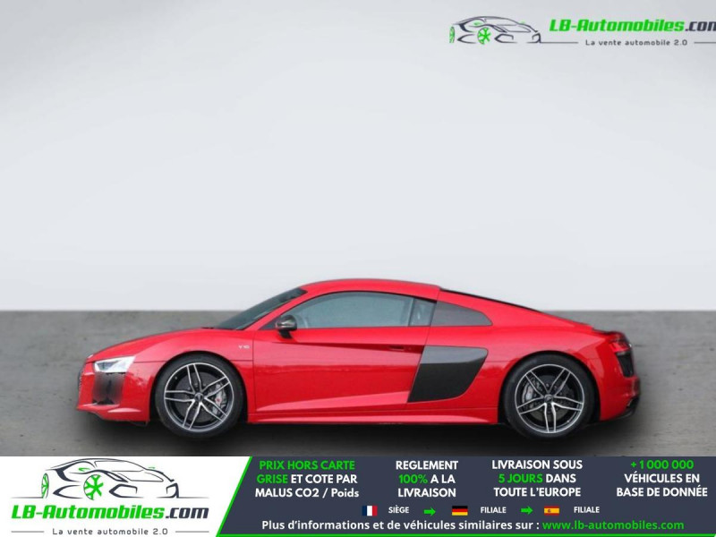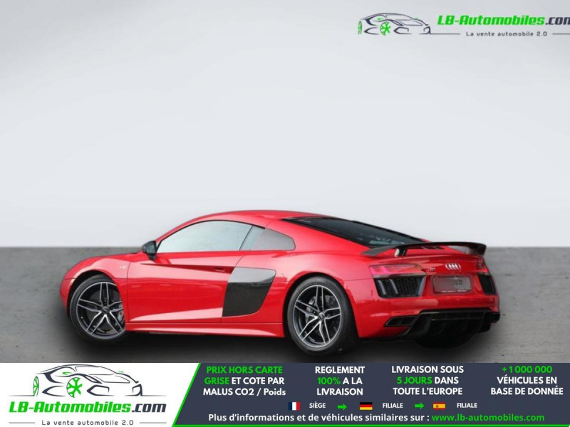 Référence : 1189888 Vos Avantages chez LB-AUTOMOBILES.com / Prix affiché TTC Livré hors carte grise / Livraison sous 10 jours dans toute la France hors 31 / Pas d?avance de frais paiement du véhicule 100% à la livraison par virement. Audi R8 Neuf remisée, Audi R8 Occasion Toulouse Beaupuy 31850, Audi R8 Véhicule sorti de réseau collaborateur, Audi R8 import, Audi R8 importateur, Audi R8 Livraison possible dans toute la France sous 5 jours, Audi R8, Audi R8 Location Option Achat, Audi R8 LLD, Audi R8 Longue Durée, Audi R8 TVA récupérable. Possibilité d'extension de garantie 12, 24,36 mois, Pour tout autres voitures import neufs ou occasions collaborateur fortement remisée, Mandataire Audi, Mandataire BMW, Mandataire Volkswagen, Mandataire Mercedes, Mandataire Peugeot Espagne, Mandataire Renault Espagne, Porsche import, Mandataire Citroën Espagne, Mandataire Seat Espagne, n'hésitez pas à nous contacter. « Sous réserve de vente préalable et erreur de saisie » Principaux équipements : - 4x4 - ABS - Assistant feux de route - Boîte de vitesses robotisée - Capteur de lumière - Capteur de pluie - Carnet d'entretien - Contrôle de la pression des pneus - Fermeture centralisée - Garantie - GPS - Jantes alliage - Kit de réparation d'urgence des pneus - Ordinateur de bord - Phares laser - Radio DAB - Rétroviseur extérieur électrique - Rétroviseur intérieur anti-éblouissement automatique - Sièges chauffants - Sièges sport - Suspension sport - Système antipatinage - Système Stop & Start - Tuner/radio - Véhicule non-fumeur - Vitres électriques - Volant en cuir - Volant multifonction