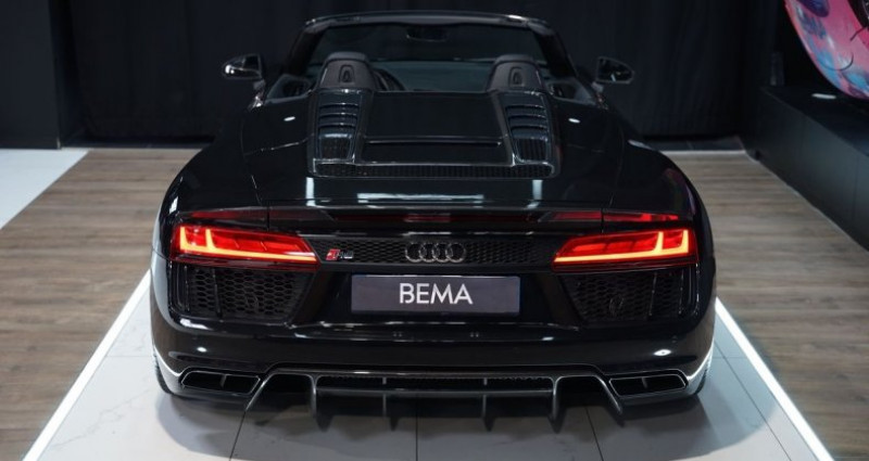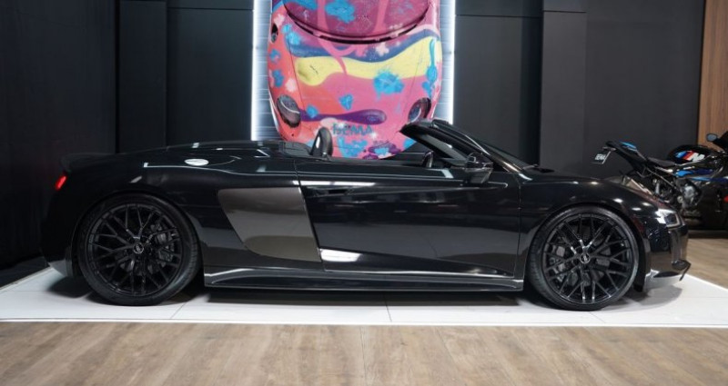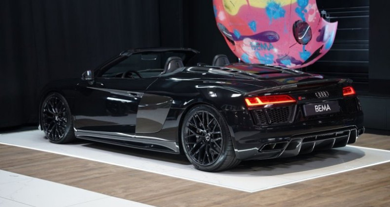 BEMA VITESSE vous propose aujourd’hui cette Audi R8 Spyder 5.2 FSI V10 PLUS, présentée dans la très belle teinte gris Daytona métallisé associée à un intérieur en cuir Nappa fin perforé noir. Version cabriolet de l’iconique R8 atmosphérique, ce modèle associe le mythique V10 5.2 litres de 610 ch, la transmission quattro, et la boîte S tronic à double embrayage, offrant des performances exceptionnelles et une sonorité unique, encore sublimée en configuration Spyder. Notre exemplaire bénéficie d’une configuration particulièrement haut de gamme : freins céramique, pack extérieur carbone brillant, capot moteur carbone, phares LED avec éclairage laser, sièges baquet, Bang & Olufsen, échappement sport, et de nombreux éléments carbone intérieur. Une R8 Spyder très fortement optionnée, élégante et résolument sportive. CONFIGURATION : Extérieur : GRIS DAYTONA COVERING NOIR BRILLANT Intérieur : CUIR NAPPA FIN PERFORÉ NOIR - CARACTÉRISTIQUES PRINCIPALES : *Malus payé *Freins céramique *Phares LED avec éclairage laser *Système audio Bang & Olufsen *Échappement sport - OPTIONS : - Freins céramique - Pack extérieur en carbone brillant Audi Exclusive - Capot moteur en carbone brillant - Phares LED avec éclairage laser Audi - Sièges baquet en cuir Nappa - Pack cuir étendu - Jantes 20’’ style 10 branches en Y finition titane mat - Media Package avec Audi Connect - Système audio Bang & Olufsen - Applications décoratives étendues carbone brillant - Échappement sport - Baguettes de seuil de porte carbone brillant - Console centrale carbone - Volant Performance R8 en cuir avec bouton de démarrage - Coques de rétroviseurs carbone brillant Audi Exclusive - Direction dynamique - Audi Parking System Plus ( radars AR) - Assistant de feux de route - Pédalier et repose-pied en aluminium - Sièges chauffants - Rétroviseurs rabattables électriquement, chauffants - HISTORIQUE : Cette Audi R8 V10 spyder a été livrée à son premier propriétaire en aout 2017 et entretenue depuis exclusivement dans le réseau constructeur. Véhicule à jour de révision. - FINANCEMENTS EN LOA | CRÉDIT BALLON | CRÉDIT CLASSIQUE Véhicule disponible en financement à partir de 1480€/mois. Pour toutes reprises, faire la demande par mail. Des erreurs peuvent se glisser dans l'annonce, merci de vous renseigner auprès d'un de nos commerciaux. Horaires d'ouverture: Lundi - Samedi de 10:00 à 19:00 Visites uniquement sur rendez-vous Site sous vidéosurveillance 7/24 En cas d'indisponibilité, merci de nous laisser un message. - Mots-clés : Performance, RWD, Plus, Spider, Huracan,