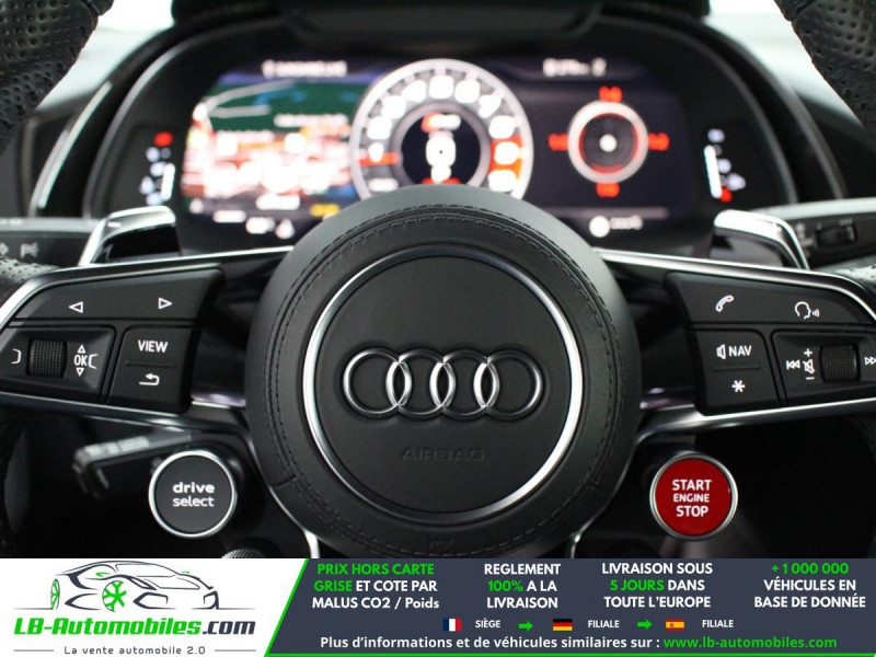 Référence : 1209709 Vos Avantages chez LB-AUTOMOBILES.com / Prix affiché TTC Livré hors carte grise / Livraison sous 10 jours dans toute la France hors 31 / Pas d?avance de frais paiement du véhicule 100% à la livraison par virement. Audi R8 Neuf remisée, Audi R8 Occasion Toulouse Beaupuy 31850, Audi R8 Véhicule sorti de réseau collaborateur, Audi R8 import, Audi R8 importateur, Audi R8 Livraison possible dans toute la France sous 5 jours, Audi R8, Audi R8 Location Option Achat, Audi R8 LLD, Audi R8 Longue Durée, Audi R8 TVA récupérable. Possibilité d'extension de garantie 12, 24,36 mois, Pour tout autres voitures import neufs ou occasions collaborateur fortement remisée, Mandataire Audi, Mandataire BMW, Mandataire Volkswagen, Mandataire Mercedes, Mandataire Peugeot Espagne, Mandataire Renault Espagne, Porsche import, Mandataire Citroën Espagne, Mandataire Seat Espagne, n'hésitez pas à nous contacter. « Sous réserve de vente préalable et erreur de saisie » Principaux équipements : - 4x4 - ABS - Accoudoir - Android Auto - Antidémarrage - Apple CarPlay - Assistance de démarrage en côte - Assistant feux de route - Bluetooth - Boîte de vitesses robotisée - Capteur de lumière - Capteur de pluie - Carnet d'entretien - Cockpit numérique - Direction assistée - Éclairage d'ambiance - Éclairage route non éblouissant - ESP - Fermeture centralisée - Feux de jour - GPS - Isofix - Jantes alliage - Kit mains libres - Ordinateur de bord - Pack sport - Phare antibrouillard - Pneus été - Port USB - Radio DAB - Réglage électrique des sièges - Régulateur de vitesse - Rétroviseur extérieur électrique - Rétroviseur intérieur anti-éblouissement automatique - Révision complète - Sièges chauffants - Sièges sport - Suspension sport - Système antipatinage - Système d'alarme - Système de détection de la fatigue - Système de reconnaissance des panneaux de signalisation - Système de sonorisation - Système Stop & Start - Tuner/radio - Véhicule non-fumeur - Verrouillage centralisé sans clé - Vitres électriques - Vitres teintées - Volant en cuir - Volant multifonction