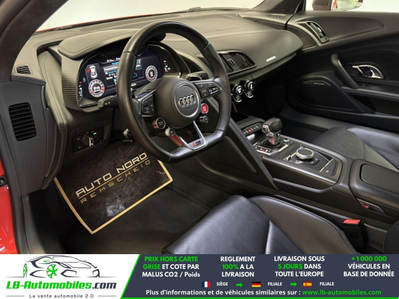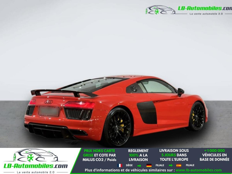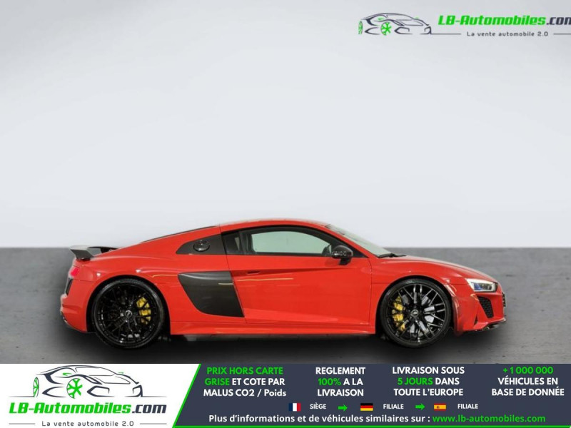 Référence : 1209696 Vos Avantages chez LB-AUTOMOBILES.com / Prix affiché TTC Livré hors carte grise / Livraison sous 10 jours dans toute la France hors 31 / Pas d?avance de frais paiement du véhicule 100% à la livraison par virement. Audi R8 Neuf remisée, Audi R8 Occasion Toulouse Beaupuy 31850, Audi R8 Véhicule sorti de réseau collaborateur, Audi R8 import, Audi R8 importateur, Audi R8 Livraison possible dans toute la France sous 5 jours, Audi R8, Audi R8 Location Option Achat, Audi R8 LLD, Audi R8 Longue Durée, Audi R8 TVA récupérable. Possibilité d'extension de garantie 12, 24,36 mois, Pour tout autres voitures import neufs ou occasions collaborateur fortement remisée, Mandataire Audi, Mandataire BMW, Mandataire Volkswagen, Mandataire Mercedes, Mandataire Peugeot Espagne, Mandataire Renault Espagne, Porsche import, Mandataire Citroën Espagne, Mandataire Seat Espagne, n'hésitez pas à nous contacter. « Sous réserve de vente préalable et erreur de saisie » Principaux équipements : - 4x4 - ABS - Accoudoir - Antidémarrage - Assistance de démarrage en côte - Assistant feux de route - Bluetooth - Boîte de vitesses robotisée - Capteur de lumière - Capteur de pluie - Carnet d'entretien - Cockpit numérique - Commande vocale - Contrôle de la pression des pneus - Direction assistée - Éclairage route non éblouissant - Écran tactile - ESP - Fermeture centralisée - Feux de jour LED - Garantie - GPS - Grille de protection pour coffre - Jantes alliage - Kit de réparation d'urgence des pneus - Kit mains libres - Lecteur CD - Ordinateur de bord - Package hiver - Pack fumeur - Pack sport - Phares laser - Pneus hiver - Port USB - Radio DAB - Régulateur de vitesse - Rétroviseur extérieur électrique - Rétroviseur intérieur anti-éblouissement automatique - Rétroviseurs extérieurs rabattables électriquement - Sièges chauffants - Sièges sport - Support lombaire - Suspension adaptative - Suspension sport - Système antipatinage - Système d'alarme - Système de limitation de la vitesse - Système de reconnaissance des panneaux de signalisation - Système de sonorisation - Système Stop & Start - Tuner/radio - Véhicule non-fumeur - Verrouillage centralisé sans clé - Vitres électriques - Vitres teintées - Volant en cuir - Volant multifonction
