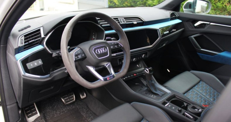 Audi RSQ3 2.5 400Ch 5 Cylindres, 29cv, blanc glacier, première mise en circulation le 11/08/2020. * Véhicule garantie 6 mois, entièrement d'origine, * Origine Française, immatriculée par Audi Mulhouse, 1 seul propriétaire, * Véhicule immatriculé en France, pas de Malus à prévoir, * Pochette, notices, double des clés disponibles, * Nombreuses options très intéressantes pour un style épuré et classe, * Dossier photos disponible sur simple demande, * La production des modèles Audi RS à été arrêté pour l'Europe, dernières lignée des mythiques modèles 5 cylindres 100% thermiques, * Utilisation saine et consommation raisonnée à 9,5l/100km sur les derniers 20 000km mixtes, véhicule ayant été suivi avec une extension de 5 ans garantie constructeur, * Roues complètes hiver avec jantes aluminium grises Audi Sport 19 d'origine et pneus Continental neufs disponibles en supplément, Suivi disponible avec un excellent entretien réalisé exclusivement par Audi : * 2020 - Centre Audi Mulhouse, * 2022 - Centre Audi Mulhouse, * 2024 - Centre Audi Mulhouse, Options et équipements présents : Extérieur et esthétique : - Peinture Blanc Glacier (LS9R), - Calandre Singleframe en finition noir brillante, - Boucliers RS, - Finitions extérieurs noires brillantes, - Contour des vitres chromées, - Jantes en alliage léger grises style polygone à 5 branches en V, - Etriers de freins gris, - Feux à allumage automatiques Matrix Led, - Clignotants dynamiques, - Rétroviseurs extérieurs réglables, dégivrants et rabattables électriquement, Intérieur : - Clé confort accès et démarrage, - Alarme antivol, - Seuil de porte aluminium sigle RSQ3, - Inserts en aluminium racing anthracite et piano black, - Ciel de pavillon en tissu Noir - Volant sport multifonction en alcantara et à palettes, - Virtual cockpit plus, - Régulateur/limiteur de vitesse, - Grand écran tactile 10.1 MMI Radio Bluetooth DAB+ - Audi smartphone interface sans fil Apple Car Play Andoid Auto Navigation, - Système Hi-fi Bang&Olufsen Surround 3D, - Audi phone box, - Eclairage d'ambiance couleurs, - Sièges avant sport électriques chauffants, - Sièges arrières coulissants avec fixations Isofix, - Prise de courant 12 volts et 2 x raccords USB places arrières, - Appui tête intégré dans les sièges, - Finition en nid d'abeilles à surpiqures bleu, - Pack design RS Bleu avec habitacle en alcantara bleu, - Climatiseur automatique confort 3 zones, - Tapis de sol RS Rouge avec sur-tapis de protection, - Pack rangement avec filets derrières sièges, - Portes gobelets, Assistance : - Fermeture centralisée et à distance, - Frein à main électrique avec fonction Auto Hold, - Assistant de démarrage en côte - Audi pre sense, - Avertisseur de changement de voie, - Avertisseur franchissement de ligne, - Avertisseur de survitesse, - Recommandation de pause, - Système de contrôle de la pression des pneus, - Hayon électrique, - Tapis en caoutchouc coffre, - Volume de coffre important de 530L (à 1525L sièges rabattus), - Kit secours + kit de gonflage et cric, - Attelage semi électrique rabattables, Châssis : - Modes de conduites Audi drive select et RS Mode, - Direction progressive, - Trains roulants sport RS, - Système de freinage RS, - Augmentation de la vitesse maximale à 280 km/h, - Suspension sport RS, - Cache moteur carbone, - Système anti nuisible types martes installé depuis sa première mise en circulation, .. - AR AUTO Spécialiste dans le dépôt-vente entre particuliers. Tous nos véhicules sont sélectionnés avec une grande attention et livré entièrement nettoyé et garantie. Detailing et livraison à domicile possible en supplément. Possibilité d’effectuer vos démarches administratives sur place et de vous récupérer à l'aéroport ou la gare de Mulhouse. FRAIS DE MISE À LA ROUTE : 500€ TTC Joignable uniquement aux horaires d’ouverture.