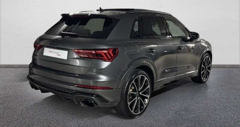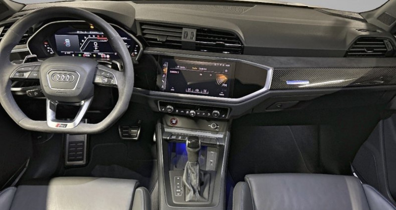Cylindrée : 2480 cm3 Nb. Vitesse : 7 - Pack Assistance Route *** Avec : Audi Pre Sense front *** Avec : Système de lecture des panneaux de signalisation par caméra *** Avec : Assistant de feux de route *** Avec : Audi Parking System Plus *** Avec : Assistant de freinage d?urgence *** Avec : Adaptive drive assist - Pack Design RS bleu *** Avec : Surpiqûre Bleu Ara *** Avec : Bordure de la ceinture de sécurité avec surpiqûre *** Avec : Jante de volant en Alcantara Noir avec surpiqûre *** Avec : Tapis complémentaires noirs et inscription RS avec surpiqûres contrastées *** Avec : Pommeau de sélecteur de vitesses en Alcantara noir, soufflet de sélecteur de vitesses avec surpiqûre - Pack esthétique Noir *** Avec : Anneaux Audi et monogrammes en Noir Brillant - Pack Eclairage d'ambiance multicolore Le pack d'éclairage d'ambiance plus comprend l'éclairage intérieur de série en blanc: - Module de toit à LED, à l'AV et à l'AR, y compris les liseuses - Miroirs de courtoisie pour le conducteur et le passager AV, éclairés - Éclairage de la boîte à gants - Éclairage du compartiment à bagages *** Avec : Pack Eclairage d'ambiance *** Avec : Choix parmi 30 couleurs *** Avec : Inscription éclairée sur le tableau de bord passager AV - Freins céramique RS avec étriers de frein en bleu avec inscription Audi ceramic a l'AV - Sièges Sport cuir Nappa fin avec surpiqures alvéolées - Vitesse maximale relevée à 280km/h - Toit panoramique - Amortissement piloté avec Audi drive select - Jantes en alliage léger, 5 branches polygon en V , 8.5Jx21 noir anthracite, polies brillant Pneus 255/35 R21 - Système d'échappement Sport avec sorties ovales noir brillant - Bang & Olufsen Premium Sound System avec son 3D Restitution sonore grâce à 17 HP incluant des HP au son 3D, 1 HP central et un subwoofer, ainsi qu'un amplificateur à 16 canaux d'une puissance totale de 730 watts - Sièges AV réglables électriquement - Phares Audi Matrix LED avec clignotants dynamiques (AV et AR) - Clé confort (Keyless entry) - Audi Phone Box avec charge du téléphone par induction (standard Qi) - Vitrage Privacy : lunette AR, vitres de portières AR et vitres latérales AR surteintées - Sièges AV chauffants - Applications décoratives en Carbone Twill (Audi exclusive en style RS) - Rétroviseurs extérieurs réglables, dégivrants et rabattables électriquement incluant fonction rabat automatique pour le rétroviseur côté passager AV - Boîtiers de rétroviseurs extérieurs en Noir - Préparation pour crochet d'attelage: comporte câblage jusqu'au logement de la roue de secours, système approprié de refroidissement du moteur Le kit de pièces pour équipement ultérieur est disponible dans les accessoires d'origine Audi. - Applications décoratives en Aluminium Racing anthracite - Audi Connect Navigation et Divertissement - Audi Connect Navigation et Divertissement Plus - Audi Virtual Cockpit : Système d'information du conducteur avec écran haute résolution de 12.3 - Climatisation automatique confort 2 zones - Coques de rétroviseurs extérieures en aluminium - MMI Navigation plus avec MMI touch response - Pack Aluminium Intérieur - Pack Brillance Extérieur *** Avec : Revêtement Noir Brillant sur les montants de pavillon centraux et AR *** Avec : Baguettes sur les appuis vitre en Aluminium anodisé - Pack Eclairage d'ambiance *** Avec : Miroirs de courtoisie éclairés côté conducteur et passager AV *** Avec : Eclairage dans la zone des pieds AV/AR *** Avec : Eclairage du porte-boissons AV *** Avec : Eclairage d'ambiance de la console centrale AV *** Avec : Eclairage du compartiment de rangement sous le tableau de bord *** Avec : Eclairage des seuils de portières AV - Phares à LED avec clignotants dynamiques AR - Rampes de pavillon en Aluminium, anodisées - Rétroviseur intérieur jour/nuit automatique sans encadrement (Frameless) - Seuils de portes AV avec insert en aluminium et illuminé - Volant Sport contour RS en cuir style 3 branches avec multifonction plus et palettes de changement de vitesses, aplati en bas - 2 prises USB à l'AR et prise 12 V dans la console centrale AR - Accoudoir central coulissant en longueur, avec inclinaison réglable avec vide-poches relevable - avec prise 12 volts dans AR de la console centrale - Affichage de contrôle de pression des pneus - Appel d'urgence Audi connect - Appuis lombaires à 4 axes pour les sièges AV - Assise et dossier de banquette AR, divisée, rabattable 40/20/40 - Audi Connect sécurité et assistance en ligne - Audi Drive Select réglage des caractéristiques individuelles du véhicule selon les modes disponibles : auto, comfort, dynamic, efficiency et individual - Audi Hold Assist - Audi Parking System Plus - Audi Pre Sense Basic - Audi Pre Sense front - Audi Smartphone Interface (Apple CarPlay ou Google AndroidAuto) - Audi sound system : 10 HP incluant un HP central et un subwoofer, amplificateur à 6 canaux avec une puissance totale de 180 watts - Avertisseur de franchissement de ligne et avertisseur de changement de voie - Becquet AR dans la couleur de carrosserie sur le capot de coffre, laqué dans la couleur de la carrosserie - Bouton mode RS - Caméra de recul - Châssis Sport RS - Ciel de pavillon en tissu Noir - Clé confort incluant déverrouillage du coffre par capteur (sans Safelock) - Commande de désactivation de l'airbag passager AV - Direction progressive: augmente la dynamique de conduite grâce à une démultiplication directe et progressive de la direction ainsi que du confort de conduite en diminuant les efforts de braquage en ville - Détecteur de pluie et de luminosité - Ecrous de roues antivol - Eléments de l?habitacle en Alcantara Noir - Emblème RS - Fixation pour sièges enfants ISOFIX et Top Tether pour les sièges extérieurs AR - Fixation pour sièges enfants ISOFIX pour le siège passager AV - Hayon assisté électriquement pour l'ouverture et la fermeture - Interface Bluetooth - Kit réparati