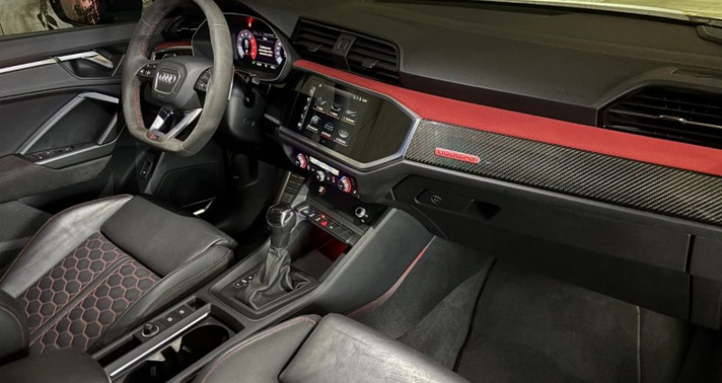 AUDI RS Q3 SPORTBACK 2.5 TFSI 400 CV QUATTRO S-TRONIC Réalisez vos projets automobiles avec nos offres de financement sur mesure disponibles sous 24h. (Sous réserve de présentation de justificatifs) TVA récupérable pour les professionnels Informations générales: 1 ère mise en circulation: 18/06/2021 Couleur extérieur: Noir Couleur intérieur: Noir Places: 5 Puissance fiscale: 28 cv Puissance Din: 400 cv Les Plus de cet Audi RS Q3: - Origine française - Entretiens disponible et à jour - Garantie 12 mois dans le réseau de la marque - Extension de garantie possible jusqu'à 36 mois OPTIONS: - Jantes Alu 21 pouces - Virtual cockpit - Lane assist - Side assist - Pack noir brillance - Accès et démarrage sans clé - Echappement sport - Différentiel Quattro Sport - Sièges sport S électrique - Attelage amovible - Volant Alcantara - Sièges avant chauffant - Son hifi Bang & Olufsen - Caméra 360° - Eclairage d'ambiance - Audi drive select - Hayon électrique - Toit ouvrant panoramique - Aide aux stationnement avant et arrière - Volant multifonctions+ palettes - App-Connect - Téléphone - GPS Europe - Rétroviseurs rabattables électrique - Régulateur de vitesse - Climatisation automatique bi-zones - Ordinateur de bord Nos Engagements: Véhicule certifié non accidenté et kilométrage réel et certifié. Reprise possible de votre véhicule. Véhicule en stock prêt à partir. Livraison possible dans toute la France. (Tarif sur demande) Possibilité de vous récupérer gratuitement à la gare de Tours ou St Pierre Des Corps. Nous vous accueillons du lundi au dimanche sur rendez-vous. Show Room de plus de 1500 M² avec plus de 50 véhicules exposés en permanence. MERTENS AUTOMOBILES D959 La Chalonnière 37390 CHARENTILLY