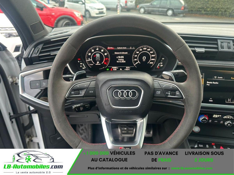 Référence : 1108715 Vos Avantages chez LB-AUTOMOBILES.com / Prix affiché TTC Livré hors carte grise / Livraison sous 10 jours dans toute la France hors 31 / Pas d?avance de frais paiement du véhicule 100% à la livraison par virement. Audi RSQ3 Neuf remisée, Audi RSQ3 Occasion Toulouse Beaupuy 31850, Audi RSQ3 Véhicule sorti de réseau collaborateur, Audi RSQ3 import, Audi RSQ3 importateur, Audi RSQ3 Livraison possible dans toute la France sous 5 jours, Audi RSQ3, Audi RSQ3 Location Option Achat, Audi RSQ3 LLD, Audi RSQ3 Longue Durée, Audi RSQ3 TVA récupérable. Possibilité d'extension de garantie 12, 24,36 mois, Pour tout autres voitures import neufs ou occasions collaborateur fortement remisée, Mandataire Audi, Mandataire BMW, Mandataire Volkswagen, Mandataire Mercedes, Mandataire Peugeot Espagne, Mandataire Renault Espagne, Porsche import, Mandataire Citroën Espagne, Mandataire Seat Espagne, n'hésitez pas à nous contacter. « Sous réserve de vente préalable et erreur de saisie » Principaux équipements : - 4x4 - ABS - Accoudoir - Android Auto - Antidémarrage - Apple CarPlay - Assistance au freinage d'urgence - Assistance de démarrage en côte - Assistant d'angle mort - Assistant feux de route - Attache remorque pivotante - Avertisseur de franchissement de ligne - Bluetooth - Boîte de vitesses robotisée - Capteur de lumière - Capteur de pluie - Carnet d'entretien - Chargement par induction pour smartphones - Cockpit numérique - Commande vocale - Contrôle de la pression des pneus - Direction assistée - Éclairage adaptatif - Éclairage d'ambiance - Éclairage route non éblouissant - Écran tactile - ESP - Fermeture centralisée - Feux de jour LED - Galerie de toit - Garantie - GPS - Grille de protection pour coffre - Hayon électrique - Isofix - Jantes alliage - Kit de réparation d'urgence des pneus - Kit mains libres - Lecteur CD - Ordinateur de bord - Package hiver - Pack fumeur - Pack sport - Phares LED - Pneus été - Pneus hiver - Port USB - Radio DAB - Réglage électrique des sièges - Régulateur de vitesse adaptatif - Rétroviseur extérieur électrique - Rétroviseur intérieur anti-éblouissement automatique - Rétroviseurs extérieurs rabattables électriquement - Sièges chauffants - Sièges sport - Support lombaire - Suspension sport - Système antipatinage - Système d'alarme - Système d'appel d'urgence - Système de détection de la fatigue - Système de limitation de la vitesse - Système de nettoyage des phares - Système de reconnaissance des panneaux de signalisation - Système de sonorisation - Système Stop & Start - Toit panoramique - Tuner/radio - Véhicule non-fumeur - Verrouillage centralisé sans clé - Vitres électriques - Vitres teintées - Volant en cuir - Volant multifonction - WLAN / point d'accès Wi-Fi