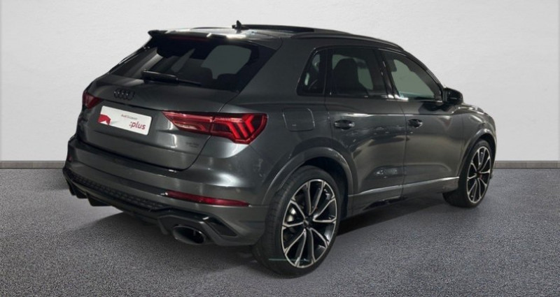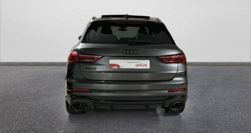 Cylindrée : 2480 cm3 Nb. Vitesse : 7 - Pack Assistance Route *** Avec : Audi Pre Sense front *** Avec : Système de lecture des panneaux de signalisation par caméra *** Avec : Assistant de feux de route *** Avec : Audi Parking System Plus *** Avec : Assistant de freinage d?urgence *** Avec : Adaptive drive assist - Pack esthétique Noir *** Avec : Anneaux Audi et monogrammes en Noir Brillant - Pack Rangement *** Avec : Prise 12V dans le coffre *** Avec : Filet de rangement au dos des sièges AV *** Avec : Insert de coffre dans les garnitures latérales *** Avec : Eclairage LED dans le coffre *** Avec : Compartiment de rangement sous le siège passager AV *** Avec : Support pour carnet de bord sous le siège conducteur *** Avec : Filet de coffre - Vitesse maximale relevée à 280km/h - Toit panoramique - Système d'échappement Sport avec sorties ovales noir brillant - Amortissement piloté avec Audi drive select - Jantes en alliage léger, 5 branches polygon en V , 8.5Jx21 noir anthracite, polies brillant Pneus 255/35 R21 - Crochet d'attelage à pivotement mécanique. Commande par touche dans le coffre, stabilisation d'attelage par (ESC) - Bang & Olufsen Premium Sound System avec son 3D Restitution sonore grâce à 17 HP incluant des HP au son 3D, 1 HP central et un subwoofer, ainsi qu'un amplificateur à 16 canaux d'une puissance totale de 730 watts - Sièges AV réglables électriquement - Clé confort (Keyless entry) - Caméras périphériques: 4 caméras grand angle couvrent l'ensemble de la zone autour du véhicule - Vitrage Privacy : lunette AR, vitres de portières AR et vitres latérales AR surteintées - Audi Phone Box avec charge du téléphone par induction (standard Qi) - Airbags latéraux AR - Sièges AV chauffants - Etriers de freins laqués rouge avec inscription RS à l'AV - Applications décoratives en Carbone Twill (Audi exclusive en style RS) - Système de contrôle de pression des pneus - Rétroviseurs extérieurs réglables, dégivrants, rabattables électriquement avec fonction rabat automatique et fonction jour/nuit automatique des deux côtés - Contrôle de descente - Pack Fumeur - Applications décoratives en Aluminium Racing anthracite - Audi Connect Navigation et Divertissement - Audi Connect navigation et divertissement - Audi Connect Navigation et Divertissement Plus - Audi Virtual Cockpit : Système d'information du conducteur avec écran haute résolution de 12.3 - Climatisation automatique confort 2 zones - Coques de rétroviseurs extérieures en aluminium - Jantes en aluminium coulé en style étoile a 10 branches 255/40 R20, 8,5 J x 20 - MMI Navigation plus avec MMI touch response - Pack Aluminium Intérieur - Pack Brillance Extérieur *** Avec : Revêtement Noir Brillant sur les montants de pavillon centraux et AR *** Avec : Baguettes sur les appuis vitre en Aluminium anodisé - Pack Eclairage d'ambiance *** Avec : Miroirs de courtoisie éclairés côté conducteur et passager AV *** Avec : Eclairage dans la zone des pieds AV/AR *** Avec : Eclairage du porte-boissons AV *** Avec : Eclairage d'ambiance de la console centrale AV *** Avec : Eclairage du compartiment de rangement sous le tableau de bord *** Avec : Eclairage des seuils de portières AV - Phares à LED avec clignotants dynamiques AR - Rampes de pavillon en Aluminium, anodisées - Rétroviseur intérieur jour/nuit automatique sans encadrement (Frameless) - Seuils de portes AV avec insert en aluminium et illuminé - Volant Sport contour RS en cuir style 3 branches avec multifonction plus et palettes de changement de vitesses, aplati en bas - 2 prises USB à l'AR et prise 12 V dans la console centrale AR - Accoudoir central coulissant en longueur, avec inclinaison réglable avec vide-poches relevable - avec prise 12 volts dans AR de la console centrale - Affichage de contrôle de pression des pneus - Appel d'urgence Audi connect - Appuis lombaires à 4 axes pour les sièges AV - Assise et dossier de banquette AR, divisée, rabattable 40/20/40 - Audi Connect sécurité et assistance en ligne - Audi Drive Select réglage des caractéristiques individuelles du véhicule selon les modes disponibles : auto, comfort, dynamic, efficiency et individual - Audi Hold Assist - Audi Parking System Plus - Audi Pre Sense Basic - Audi Pre Sense front - Audi Smartphone Interface (Apple CarPlay ou Google AndroidAuto) - Audi sound system : 10 HP incluant un HP central et un subwoofer, amplificateur à 6 canaux avec une puissance totale de 180 watts - Avertisseur de franchissement de ligne et Audi Side Assist - Becquet AR dans la couleur de carrosserie sur le capot de coffre, laqué dans la couleur de la carrosserie - Bouton mode RS - Caméra de recul - Châssis Sport RS - Ciel de pavillon en tissu Noir - Clé confort incluant déverrouillage du coffre par capteur (sans Safelock) - Commande de désactivation de l'airbag passager AV - Direction progressive: augmente la dynamique de conduite grâce à une démultiplication directe et progressive de la direction ainsi que du confort de conduite en diminuant les efforts de braquage en ville - Détecteur de pluie et de luminosité - Ecrous de roues antivol - Eléments de l?habitacle en Alcantara Noir - Emblème RS - Fixation pour sièges enfants ISOFIX et Top Tether pour les sièges extérieurs AR - Fixation pour sièges enfants ISOFIX pour le siège passager AV - Hayon assisté électriquement pour l'ouverture et la fermeture - Interface Bluetooth - Kit réparation - Outillage de bord - Réception radio numérique (DAB) - Régulateur de vitesse - Rétroviseurs extérieurs réglables électriquement et dégivrants - Sièges AV réglables manuellement : hauteur d'assise, positionnement en longueur, inclinaison du dossier, hauteur des appuie-tête et hauteur des ceintures - Sièges AV sport - Sécurité enfant électrique - Tapis de sol AV/AR - Trousse de secours, triangle de présignalisation et 2 vestes de sécurité
