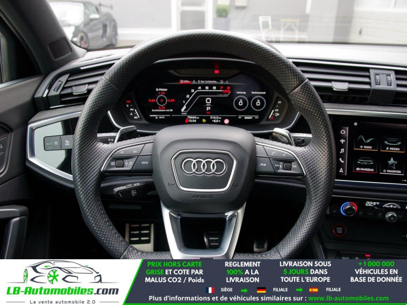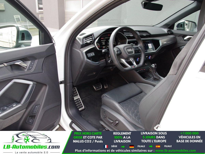 Référence : 1162022 Vos Avantages chez LB-AUTOMOBILES.com / Prix affiché TTC Livré hors carte grise / Livraison sous 10 jours dans toute la France hors 31 / Pas d?avance de frais paiement du véhicule 100% à la livraison par virement. Audi RSQ3 Neuf remisée, Audi RSQ3 Occasion Toulouse Beaupuy 31850, Audi RSQ3 Véhicule sorti de réseau collaborateur, Audi RSQ3 import, Audi RSQ3 importateur, Audi RSQ3 Livraison possible dans toute la France sous 5 jours, Audi RSQ3, Audi RSQ3 Location Option Achat, Audi RSQ3 LLD, Audi RSQ3 Longue Durée, Audi RSQ3 TVA récupérable. Possibilité d'extension de garantie 12, 24,36 mois, Pour tout autres voitures import neufs ou occasions collaborateur fortement remisée, Mandataire Audi, Mandataire BMW, Mandataire Volkswagen, Mandataire Mercedes, Mandataire Peugeot Espagne, Mandataire Renault Espagne, Porsche import, Mandataire Citroën Espagne, Mandataire Seat Espagne, n'hésitez pas à nous contacter. « Sous réserve de vente préalable et erreur de saisie » Principaux équipements : - 4x4 - ABS - Accoudoir - Antidémarrage - Assistance de démarrage en côte - Assistant d'angle mort - Attache remorque pivotante - Avertisseur de franchissement de ligne - Bluetooth - Boîte de vitesses robotisée - Capteur de lumière - Capteur de pluie - Carnet d'entretien - Chargement par induction pour smartphones - Cockpit numérique - Commande vocale - Contrôle de la pression des pneus - Diesel avec filtre à particules - Éclairage d'ambiance - Écran tactile - ESP - Fermeture centralisée - Feux de jour LED - GPS - Hayon électrique - Isofix - Jantes alliage - Kit de réparation d'urgence des pneus - Kit mains libres - Ordinateur de bord - Phares LED - Pneus été - Port USB - Radio DAB - Réglage électrique des sièges - Réglage électrique des sièges avec fonction mémoire - Régulateur de vitesse - Rétroviseur extérieur électrique - Rétroviseurs extérieurs rabattables électriquement - Sièges chauffants - Sièges sport - Streaming musical intégré - Support lombaire - Système antipatinage - Système d'alarme - Système d'appel d'urgence - Système de détection de la fatigue - Système de nettoyage des phares - Système de reconnaissance des panneaux de signalisation - Système Stop & Start - Toit panoramique - Tuner/radio - Véhicule non-fumeur - Verrouillage centralisé sans clé - Vitres électriques - Vitres teintées - Volant en cuir - Volant multifonction