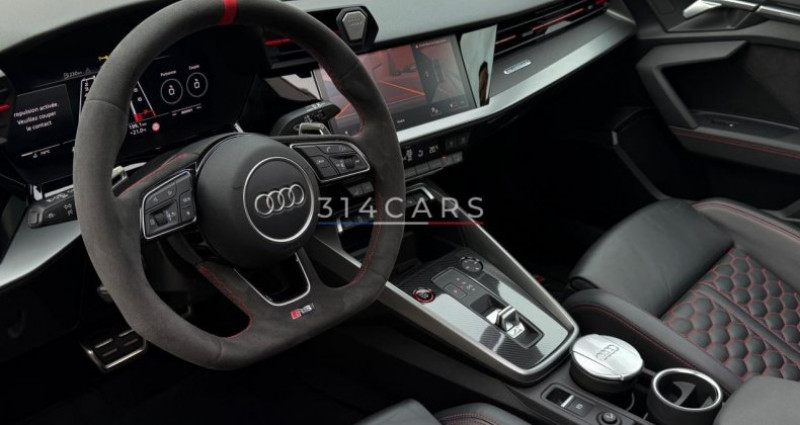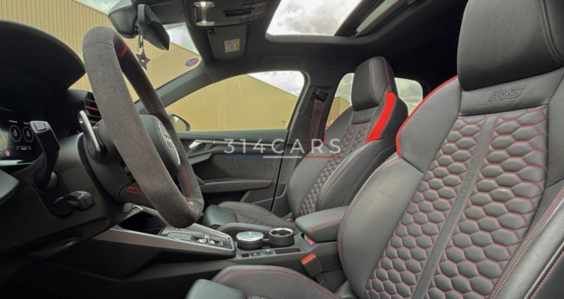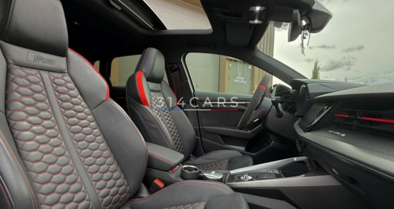 ======= OPTIONS ======= Affichage tête haute Airbags latéraux à l'arrière Climatisation automatique confort 3 zones Echappement Sport RS Equipement extérieur RS en Noir Brillant Pack Design RS Rouge Phares Audi Matrix LED avec clignotants dynamiques à l?avant et à l?arrière Sellerie Cuir Nappa fin avec surpiqûres contrastés et embossé RS Sièges avant chauffants Suspension à amortissement piloté Système de contrôle de pression des pneus (affichage de la pression) Système de lecture des panneaux de signalisation par caméra Toit panoramique Vitres surteintées (vitrage Privacy) lunette arrière et vitres latérales arrière surteintées Volant 3 branches multifonction plus en cuir avec palettes de changement de vitesse ======= EQUIPEMENTS DE SERIE ======= Assistant de feux de route Audi Drive Select Audi Hold Assist Audi Park Assist Caméra de recul Climatisation automatique confort 2 zones Limiteur de vitesse MMI Radio Plus Phares à LED avec clignotants dynamiques à l arrière Réception radio numérique (DAB) Sièges Sport Volant cuir Sport multifonctions plus 3 branches avec méplat et palettes de commande au volant Nb. Vitesses : 7 Conso Mixte : l/100