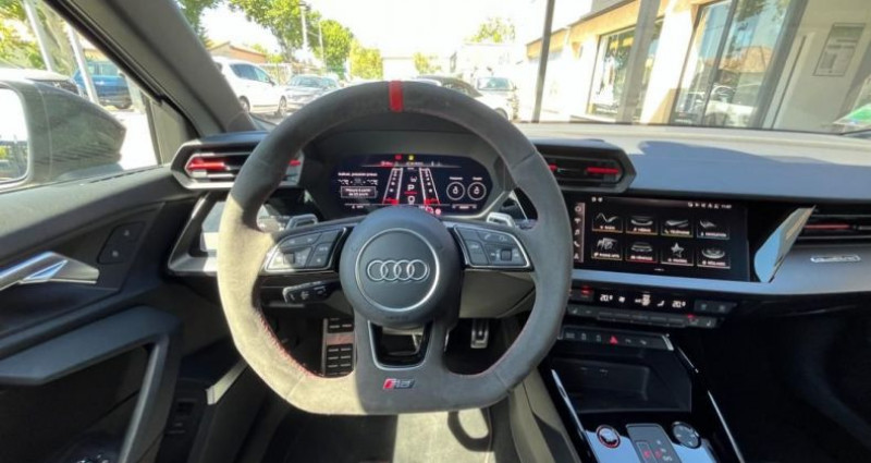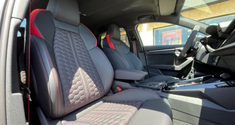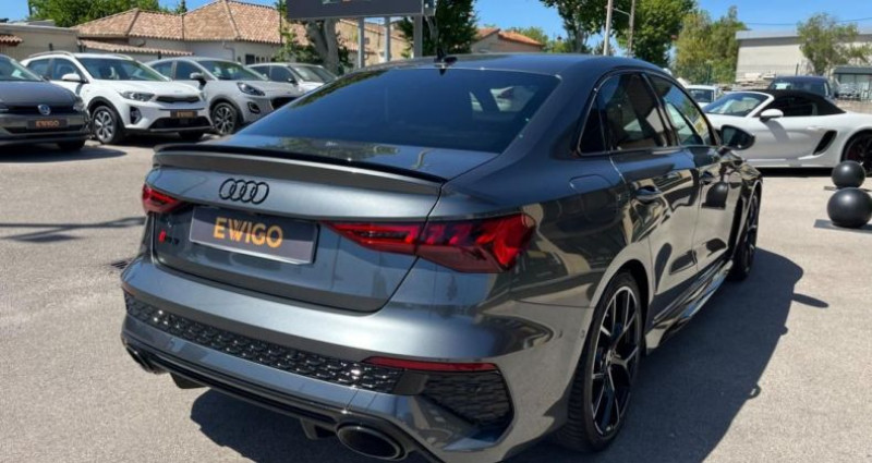 Audi RS3 2.5 TFSI 400CH QUATTRO S-TRONIC BVA berline, gris, 28 cv, 4 portes, première mise en circulation le 20/01/2022, garantie 6 mois. - NOS SERVICES ET PRESTATIONS COMPLÉMENTAIRES - - Visite virtuelle : avant de vous déplacer, visualisez votre futur véhicule sous toutes ses coutures . Contactez-nous pour en voir plus ! - Extension de garantie jusqu'à 60 mois. - Solutions de Financement de 12 à 84 mois. - Livraison dans toute la France métropolitaine (sur devis). - Reprise possible de votre ancien véhicule. - Les informations délivrées par cette annonce sont non contractuelles et données à titre indicatif. Packs disponibles (véhicules éligibles au Label) - Pack Clés en Main - 691 € TTC(¹)(²) Démarches (hors carte grise) | 1/4 de carburant | Nettoyage First | Garantie 6 mois | Label inclus? - Pack Sérénité - 891 € TTC(¹)(²)- Démarches (hors carte grise) | 1/2 de carburant | Nettoyage Confort | Garantie 12 mois | Label inclus? - Pack Prestige - 1.091 € TTC(¹)(²) Démarches (hors carte grise) | Plein complet | Nettoyage Prestige | Garantie 12 mois | Label inclus? + Surprise du chef - (¹) Les véhicules non éligibles au Label bénéficient de tarifs préférentiels. Veuillez contacter votre conseiller pour obtenir les conditions tarifaires applicables. (²) Tarif pour les véhicules deux roues motrices dont la valeur de vente est inférieure à 60 000 € TTC. - Véhicule visible sur rendez vous 5 places OPTIONS ET ÉQUIPEMENTS : Audio - Télécommunications : - Android auto sans fil - Apple CARPLAY sans fil - Info trafic - Reconnaissance vocale - Système Audio Bang & Olufsen - Bluetooth - GPS - Prise audio usb Conduite : - Accès et démarrage sans clé - Choix du mode de conduite - Essuies glaces automatiques - Frein de parking auto - Frein de parking électrique - Front assist - Indicateur de limitation de vitesse - Line assist - Park assist - Suspension pilotée - Système d'accès sans clé - Stop & Start - affichage tête haute - allumage automatique des feux - démarrage sans clé - détecteur de pluie - limiteur de vitesse - palettes au volant - sièges sport - suspension sport Couleur : - Peinture métallisée Extérieur : - Clignotants dynamiques AV /AR - Echappement à double sortie - Phare matrix led - Phares AR à led - Phares AV de jour à LED - Système d'éclairage intelligent - camera 360 - caméra de recul - jantes : aluminium - phares directionnels - phares à LED - rétroviseurs rabattables - rétroviseurs électriques - système d'aide au stationnement Intérieur : - Eclairage d'ambiance - Filet de rangement dans le coffre - Pédalier sport - Siège conducteur et passager avec réglage lombaire - Sièges AV électriques - Volant alu/cuir - Porte gobelet avant - accoudoir central - accoudoir central arrière - banquette 1/3 - 2/3 - climatisation : multi zone - climatisation multi zone - fermeture centralisée - non fumeur - ordinateur de bord - rétroviseur interieur electrochrome - sièges chauffants - vitres surteintées - vitres électriques - volant réglable hauteur - volant réglable profondeur - volant sport Pack : - Boîte de vitesse automatique - Ligne d'échappement sport - Mode confort - Mode sport - Mode sport + - Pack RS line - Recharge sans fil par induction - Étriers de freins rouges - 4 roues motrices - Cockpit numérique - GPS couleur - volant multifonctions - volant réglable Sellerie : - Sellerie cuir Sécurité : - Airbags - Airbags piéton - Alarme périmétrique - Alerte franchissement de lignes - Contrôle de pression des pneus - Contrôle du freinage en courbe - Lecture des panneaux - Système de lecture des panneaux - Système de lecture des sms - ABS - Aide au demarrage en pente - ESP - aide au freinage d'urgence - airbags latéraux - fixations ISOFIX - phares antibrouillard Autres équipements et informations : - Carnet d'entretien - Carnet d'entretien dématérialisé - Double des clés - Entretien constructeur - Factures d'entretien - Mode normal - Pleins phares auto - Réseau WIFI - Classe Crit'air : 1 - GPS tactile - Puissance kilowatt : 294 kw - USB - dimension des jantes : 19 pouces - nombre de rapports : 7 vitesses - puissance réelle : 400 ch - émission CO2 : 183 g/km - état : excellent Référence annonce : d146830