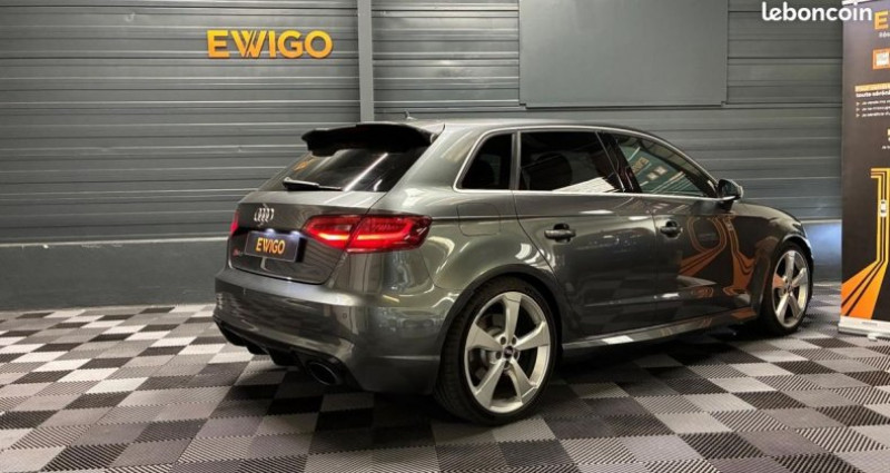 Audi RS3 SPORTBACK 2.5 TFSI 367 PACK QUATTRO BVA berline, gris, 25 cv, 5 portes, première mise en circulation le 28/09/2015, garantie 6 mois. - NOS SERVICES ET PRESTATIONS COMPLÉMENTAIRES - - Visite virtuelle : avant de vous déplacer, visualisez votre futur véhicule sous toutes ses coutures . Contactez-nous pour en voir plus ! - Extension de garantie jusqu'à 60 mois. - Solutions de Financement de 12 à 84 mois. - Livraison dans toute la France métropolitaine (sur devis). - Reprise possible de votre ancien véhicule. - Les informations délivrées par cette annonce sont non contractuelles et données à titre indicatif. Packs disponibles (véhicules éligibles au Label) - Pack Clés en Main - 691 € TTC(¹)(²) Démarches (hors carte grise) | 1/4 de carburant | Nettoyage First | Garantie 6 mois | Label inclus? - Pack Sérénité - 891 € TTC(¹)(²)- Démarches (hors carte grise) | 1/2 de carburant | Nettoyage Confort | Garantie 12 mois | Label inclus? - Pack Prestige - 1.091 € TTC(¹)(²) Démarches (hors carte grise) | Plein complet | Nettoyage Prestige | Garantie 12 mois | Label inclus? + Surprise du chef - (¹) Les véhicules non éligibles au Label bénéficient de tarifs préférentiels. Veuillez contacter votre conseiller pour obtenir les conditions tarifaires applicables. (²) Tarif pour les véhicules deux roues motrices dont la valeur de vente est inférieure à 60 000 € TTC. - Nous vous accueillons à notre agence du Lundi au vendredi de 09h à 12h et de 14h à 18h00 et le samedi sur Rendez vous. Véhicule visible uniquement sur rendez-vous. EWIGO Montélimar 5 places OPTIONS ET ÉQUIPEMENTS : Audio - Télécommunications : - Info trafic - Radio - Système Audio Bang & Olufsen - Bluetooth - GPS - Prise audio usb - commandes vocales - prise audio auxiliaire - radio numérique - système de navigation Conduite : - Boîte de vitesse séquentielle - Choix du mode de conduite - Essuies glaces automatiques - Frein de parking auto - Frein de parking électrique - Système d'accès sans clé - allumage automatique des feux - carte main libre - clé mains-libres - démarrage sans clé - détecteur de pluie - limiteur de vitesse - pack sport - régulateur de vitesse Extérieur : - Capteurs d'aide au stationnement arrière - Capteurs d'aide au stationnement avant - Phare matrix led - Phares AR à led - Phares AV de jour à LED - Rétroviseurs électriques et dégivrants - Aide au parking AR - jantes : aluminium - jantes alliage - phares directionnels - phares à LED - rétroviseurs rabattables - rétroviseurs électriques - système d'aide au stationnement Intérieur : - Intérieur cuir nappa - Miroir de courtoisie chauffeur éclairé - Miroir de courtoisie passager éclairé - Pédalier sport - Sièges AV électriques - Volant alu/cuir - Porte gobelet avant - climatisation : automatique - climatisation multi zone - direction assistée - fermeture centralisée - non fumeur - rétroviseur interieur electrochrome - verrouillage à distance - vitres surteintées - vitres électriques - volant réglable hauteur - volant réglable profondeur - volant sport Pack : - Boîte de vitesse automatique - Pneus été - Sièges arrières 1/3 - 2/3 - GPS couleur - anti démarrage - détecteur de lumière - soundsystem - volant réglable Sécurité : - Airbags - Antibrouillards avant - Contrôle de pression des pneus - Contrôle du freinage en courbe - ABS - Aide au demarrage en pente - ESP - airbag arrière - airbag coté passager - anti-patinage - fixations ISOFIX - phares antibrouillard Autres équipements et informations : - Carnet d'entretien - Double des clés - Factures d'entretien - Phares AV de jour - Classe Crit'air : 1 - Puissance kilowatt : 270 kw - USB - dimension des jantes : 19 pouces - nombre de rapports : 7 vitesses - puissance réelle : 367 ch - émission CO2 : 189 g/km - état : excellent Référence annonce : d146304