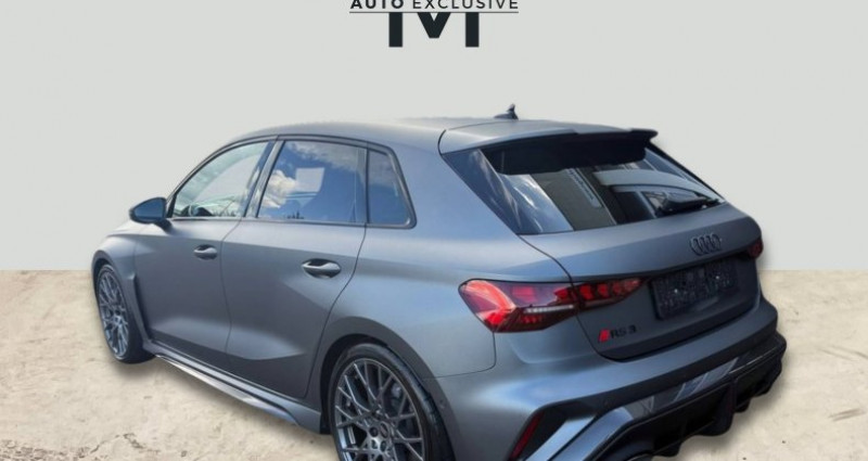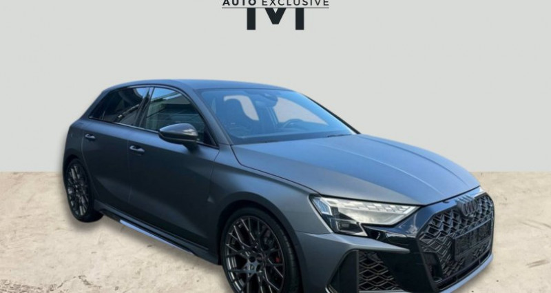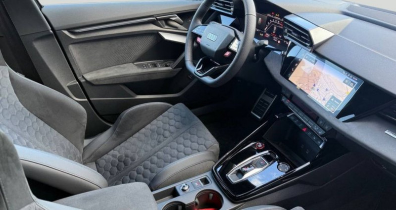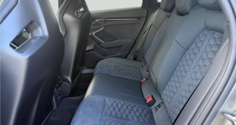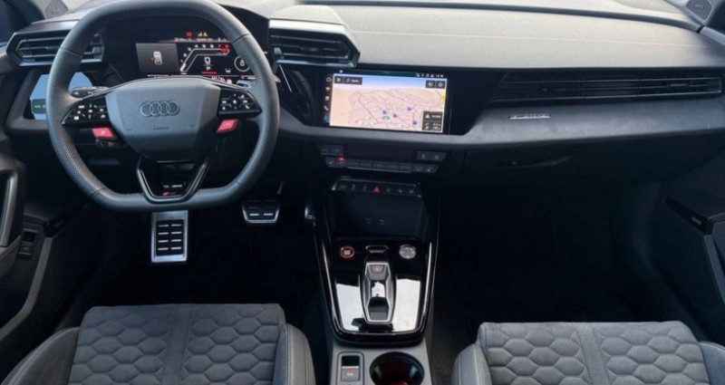 Cylindrée : 2480 cm3 Nb. Vitesse : 7 - 2 ports de charge USB AR - Accoudoir central AV coulissant en longueur, avec inclinaison réglable - Adaptative Cruise Control - Airbags latéraux AV et système d'airbags de tête - Alarme antivol - Alerte de sortie de voie avec assistance d'urgence - Appuis lombaires à 4 axes pour les sièges AV - Assistant de feux de route - Audi Connect Appel d'urgence - Audi Connect navigation et divertissement plus - Audi Drive Select - Audi Hold Assist maintient le véhicule à l'arrêt aussi bien en côte qu'en descente au sein de la circulation routière, sans limite de temps - Audi park assist : cherche à l'aide de capteurs à ultrasons les places de stationnement (bataille et créneau) appropriées le long de la chaussée, calcule le créneau idéal et gère le braquage automatiquement - Audi phone box - Audi Phone box light (chargeur sans fil avec standard QI) - Audi smartphone interface - Audi Sound System 10 HP incluant 1 HP central et 1 subwoofer, amplificateur à 6 canaux avec une puissance totale de 180 watts - Augmentation de la vitesse maximale à 280 km/h Limitation électronique - Boitiers de rétroviseurs extérieurs noir - Caméra de recul - Ciel de pavillon en tissu Noir - Clé confort (avec safelock) - Climatisation automatique confort 2 zones - Combiné d'instruments numérique Digital Cockpit avec design spécifique RS supplémentaire 10,25 - Détecteur de pluie et de luminosité - Direction progressive - Dispositif de limitation de vitesse - Dossier de banquette AR rabattable en 2 parties - Ecrous de roues antivol - Eléments de l'habitacle intérieur en microfibre Dinamica composé de: Accoudoir central AV en microfibre Dinamica, Accoudoir de porte en microfibre Dinamica - Eléments extérieurs RS en carbone/noir brillant Spoiler AV en carbone avec grille en losange en noir brillant, grille de protection du radiateur à l'AV avec prises d'air de grande taille, lames latérales et inserts de bas de caisse en carbone, Insert de diffuseur AR en noir brillant avec insert en carbone - Eléments extérieurs RS en noir mat Spoiler AV en noir avec grille en losange en noir mat, grille de protection du radiateur à l'AV avec larges prises d'air en noir mat, lames latérales et inserts de bas de caisse en noir brillant, Insert de diffuseur AR en noir mat avec insert en noir brillant - Extension de garantie 3 ans supplémentaires (2 + 3) ou 100000 km - Extérieur RS avec équipement extérieur RS en noir mat Calandre noir mat, Diffuseur noir mat - Hayon assisté électriquement pour l'ouverture et la fermeture - Insert décoratif en microfibre Dinamica Noir (au tableau de bord) - Inserts décoratifs en effet carbone Atlas Structure (au tableau de bord) - Jantes style à 10 branches en Y gris platine, tournées brillantes 9,0J x 19pneus 265/30 AV, 8,0J x 19pneus 245/35 AR - Jantes style à 5 branches en Y, noir mat 9,0J x 19pneus 265/30 AV, 8,0J x 19pneus 245/35 AR - MMI Navigation plus avec MMI touch - Pack assistance route Système de protection proactive des occupants à l'AV, sur les côtés et à l'AR, Avertisseur de changement de voie avec avertissement d'ouverture de porte et assistant de circulation transversale *** Avec : Avertisseur de changement de voie avec avertissement d'ouverture de porte, et assistant de circulation transversale *** Avec : Système de protection proactive des occupants AV/AR et sur les côtés - Pack climatisation plus - Sièges AV chauffants - Climatisation confort automatique 3 zones *** Avec : Climatisation automatique Confort 3 zones *** Avec : Sièges AV chauffants - Pack confort pro - Sièges AV à réglage électrique avec fonction mémoire pour le siège du conducteur - Rétroviseurs extérieurs réglables, dégivrants et rabattables électriquement jour/nuit automatique avec fonction mémoire *** Avec : Rétroviseurs extérieurs réglables, dégivrants et rabattables électriquement jour/nuit automatique avec fonction mémoire *** Avec : Sièges AV réglables électriquement avec fonction mémoire pour le siège conducteur - Pack éclairage d'ambiance pro Module de toit à AV et AR, y compris liseuses, Miroir de courtoisie éclairé, Éclairage d'ambiance des portes AV/AR, Eclairage des seuils de porte, Compartiment de rangement éclairé de la console centrale, Eclairage du plancher AV - Pack Esthétique Noir plus Anneaux noirs et identification du modèle en noir - Pack Navigation Affichage tête haute, MMI Navigation plus avec MMI touch, Audi virtual cockpit plus, Système audio Sonos premium avec son 3D *** Avec : Affichage tête haute *** Avec : Audi virtual cockpit plus *** Avec : Système audio SONOS Premium avec son 3D - Pack Rangement - Boîte à gant verrouillable - Compartiment de rangement côté conducteur - Filet de rangement AR des sièges AV - Prise 12V dans la console centrale AR - Prise 12V dans le coffre - Filet de compartiment bagages - 2ème lumière LED à gauche du coffre à bagages - Pare-brise à vitrage athermique et acoustique avec bandeau pare-soleil Gris - Phares à LED avec clignotants dynamiques AR - Projecteurs Matrix LED, blocs de feux AR à LED et lave-projecteurs - Rétroviseur intérieur jour/nuit automatique sans encadrement - Rétroviseurs extérieurs réglables, dégivrants, rabattables électriquement avec fonction rabat automatique, (côté passager AV, marche AR enclenchée) et fonction jour/nuit automatique des deux côtés - Sellerie Dinamica/cuir mono.pur 550 - Sièges AV réglables manuellement: Hauteur et positionnement en longueur, Inclinaison de dossier, Hauteur des appuie-tête et des ceintures - Sièges baquets - Sièges Sport - Suppression d'identification moteur - Suspension avec amortisseurs pilotés - Système d'échappement sport RS - Système de lecture des panneaux de signalisation par caméra - Tapis de sol AV/AR - Teinte Audi Exclusive - Variante de cuir Noir (habitacle) - Vitrage Privacy : lunette AR, vitres de portières AR et vitres latérales