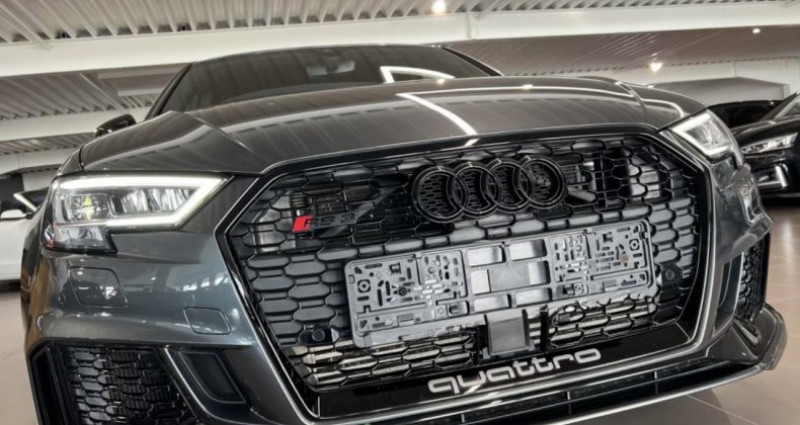 ======= OPTIONS ======= Audi pre sense front Pack Design RS Peinture métallisée ou nacrée Projecteurs Audi Matrix LED avec clignotants dynamiques (avant et arrière) Réception radio numérique (DAB) Sièges avant chauffants Sièges Sport RS à l'avant en cuir Nappa avec surpiqûres diamant Vitres surteintées (privacy glass) : lunette arrière et vitres latérales arrière surteintées ======= EQUIPEMENTS DE SERIE ======= Advanced Key : système d'autorisation d'accès et de démarrage main libre Audi Hold Assist : maintient le véhicule à l'arrêt en côte comme en descente, sans limite de temps. Le système est activé par pression sur une touche et permet au conducteur un redémarrage confortable sans actionner le frein à main Audi Smartphone Interface avec AppleCarplay et AndroidAuto Audi sound system : 10 haut-parleurs incluant un haut-parleur central et un subwoofer ; amplificateur à 6 canaux avec une puissance totale de 180 watts Audi virtual cockpit : combiné d instruments entièrement numériques avec affichage haute résolution sur un écran de 12,3 Frein de stationnement electromécanique Pack Eclairage Nb. Vitesses : 7 Conso Mixte : l/100