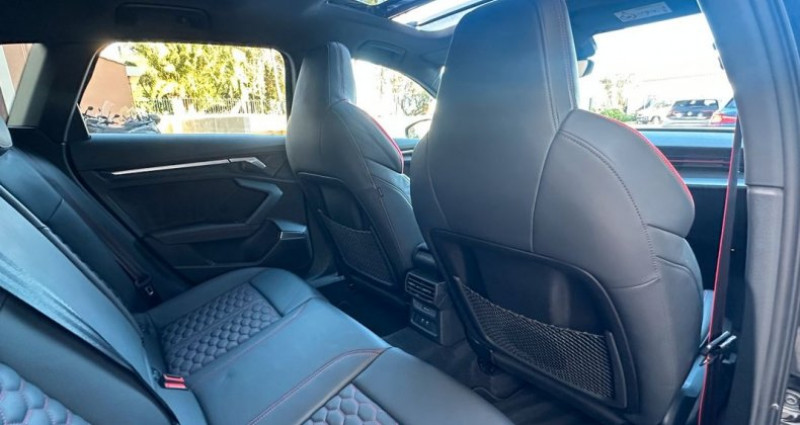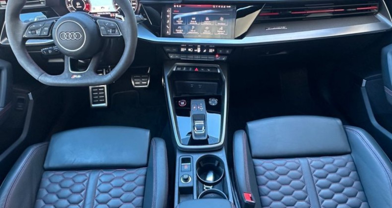 AUDI RS3 III SPORTBACK 2.5 TFSI 400 QUATTRO S TRONIC Véhicule en excellent état Suivi complet Audi Immatriculation Monégasque Malus de 20 000€ à prévoir pour une immatriculation en France Echappement Milltek Date de mise en circulation : 26/04/2023 Kilométrage : 47000kms Exterieur : Noir métalisée / Carbon Interieur : Cuir / Surpiqûres Rouge Equipements et Options : Aide parking av/ar Volant Alcantara Châssis sport Échappement sport Étriers de freins rouges Inserts décoratifs en carbone Atlas Structure Frein de parking automatique Hayon électrique Jantes alu 19 Jantes noires Rétroviseurs rabattables électriquement Toit ouvrant panoramique Régulateur adaptatif Réception radio numérique (DAB) Direction progressive Volant cuir Sport multifonctions Plus 3 branches avec méplat et palettes de commande au volant Audi Drive Select Pack Eclairage d'ambiance multicolore Rétroviseur intérieur jour/nuit automatique sans encadrement Audi Connect navigation Accoudoir central coulissant en longueur, avec inclinaison réglable Pare-brise à vitrage acoustique Audi Connect Appel d?urgence & Service Rétroviseurs extérieurs réglables, dégivrants, rabattables électriquement avec fonction rabat MMI Navigation plus avec MMI touch Sellerie Dinamica/cuir mono.pur 550 Climatisation automatique Démarrage sans clef Pack carbone Pack confort Palettes au volant Pédalier alu Prise audio USB Régulateur limiteur de vitesse Rétroviseur int. jour/nuit auto Sièges chauffants Sièges électriques Sièges sport Système audio Bang & Olufsen Volant réglable en hauteur et profondeur Intérieur cuir Écran tactile APPLE CAR PLAY Système d'entrée sans clef Virtual cockpit Audi Park Assist Assistant de feux de route Appel d'urgence Audi connect Détecteur de pluie et de luminosité Phares à LED avec clignotants dynamiques AR Alerte de sortie de voie Audi pre sense front Dispositif de limitation de vitesse Airbags latéraux à l'AV et système d'airbags de tête Commande de désactivation de l'airbag passager AV Contrôle de la pression des pneus Adaptative Cruise Control Aide au démarrage en côte Alerte franchissement ligne Système d'alarme antivol Affichage tête haute Audi Hold Assist Audi Pre Sense Basic Audi smartphone interface Caméras(360°) Clé confort incluant déverrouillage du coffre par capteur (avec Safelock) + Alarme antivol MMI Radio Plus Pack Design RS Rouge Phares Matrix LED avec clignotants dynamiques à l'AV et à l'AR Système de lecture des panneaux de signalisation par caméra RS MONACO VOUS PROPOSE AUSSI : * ACHAT & REPRISE de votre ancien véhicule * Gestion des démarches administratives liées à l'immatriculation et carte grise de votre véhicule, en France et à Monaco. * Véhicule garanti 3 mois. * Financement de votre nouvelle acquisition possible (Validation sous 48 heures sous réserve d'acceptation du dossier) Nos Horaires : Du Lundi au Vendredi de 9h00 à 18h30 Non Stop. Notre Adresse : RS MONACO, 32 bd du Jardin Exotique, 98000 Monaco Aucune responsabilité n’est assumée par notre société en cas d’erreurs