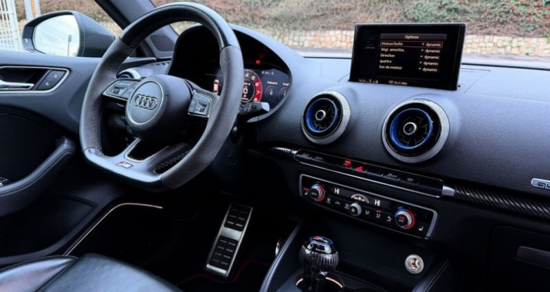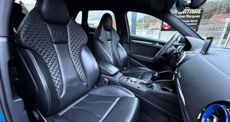 Dominique Vivier Automobiles vous propose à la vente cette magnifique Audi RS3 Sportback : ?? 2.5 TFSI 400 ch ; ?? Boîte automatique S Tronic 7 ; ? Mise en circulation le 28/02/2018 ; ?? Avec 64 106 km ; ?? Française (pas de malus Co2) ; ? Suivi complet d’entretien ; Garantie 12 mois et configurée comme suit : Options : Caméra de recul Bang & Olufsen Sound System Rampes de pavillon noire Sièges Sport RS Sièges AV chauffants Ligne échappement Sport RS Peinture Audi Exclusive Bleu Ara Inserts décoratifs carbone Freins en céramique … Audio - Télécommunications : Bluetooth Radio GPS Recharge du téléphone à induction Conduite : Virtual Cockpit Aide au démarrage en côte Démarrage sans clé Régulateur / Limiteur de vitesse Extérieur : Feux arrière à LED Phares Matrix LED Caméra de recul Radar de stationnement AV / AR Système d'éclairage intelligent Intérieur : Eclairage d'ambiance Fixations Isofix aux places arrières Ordinateur de bord Sièges AV avec réglage lombaire électrique Banquette 60/40 Clim automatique bi-zones Volant sport Véhicule en parfait état, révisé et garanti 12 mois Véhicule en stock, disponible immédiatement Financement et reprise possible Dominique Vivier Automobiles Mandataire Vente Achat Reprise Crédit Dépôt Vente DVA 127 Rue René Wallard 62700 Bruay-la-Buissière -> À 45 minutes de l’aéroport de Lille-Lesquin -> À 35 minutes de la gare d’Arras -> À 15 minutes de la gare de Béthune Transport assuré par nos soins