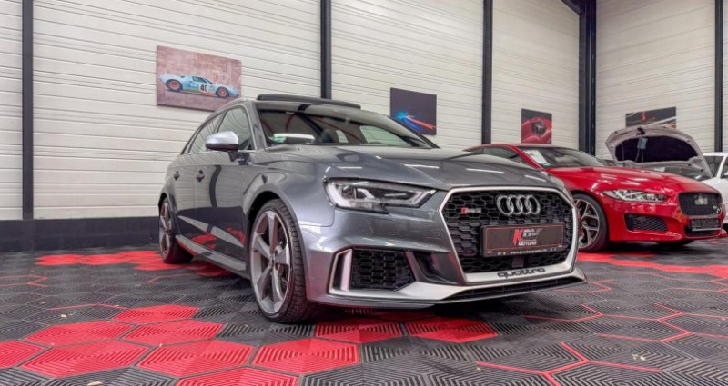 ======= OPTIONS ======= Bang & Olufsen Sound System Pack cuir étendu Sièges avant chauffants Sorties d'échappement Sport RS pour une sonorité encore plus sportive Accoudoir central avant coulissant en longueur, avec vide-poches relevable et inclinaison réglable Advanced Key : système d'autorisation d'accès et de démarrage main libre Airbags conducteur et passager Audi Drive Select : différents réglages du véhicule à travers trois modes Audi parking system plus : signal acoustique et visuel d'aide au stationnement avant et arrière par pictogrammes sur l'écran Châssis Sport RS Climatisation automatique bi-zone Contrôle de pression des pneus ( TPMS ) Détecteur de pluie et allumage automatique des projecteurs Feux de route assistés : gestion automatique du passage de feux de croisement à pleins phares et inversement Frein de stationnement electromécanique Freins à disques Inscriptions RS3 sur la calandre, le capot de coffre, les baguettes des seuils de portes, le volant Sport, le pommeau de levier de vitesses et le compte-tours Palettes de changement de rapports au volant Pare-chocs RS : style dynamique et sportif, larges prises d'air à l'avant en noir brillant ainsi que lame horizontale laquée dans la couleur de carrosserie, diffuseur noir brillant à l'arrière Régulateur et limiteur de vitesse Sièges avant sport Système ABS avec répartiteur électronique de freinage EBV, programme électronique de stabilisation ESC avec détection de barres de toit et assistance au freinage d?urgence Système d'airbags de tête Tapis de sol AV et AR Volant réglable manuellement en hauteur et en profondeur ======= EQUIPEMENTS DE SERIE ======= Accoudoir central avant coulissant en longueur, avec vide-poches relevable et inclinaison réglable Advanced Key : système d'autorisation d'accès et de démarrage main libre Airbags conducteur et passager Audi Drive Select : différents réglages du véhicule à travers trois modes Audi parking system plus : signal acoustique et visuel d'aide au stationnement avant et arrière par pictogrammes sur l'écran Châssis Sport RS Climatisation automatique bi-zone Contrôle de pression des pneus ( TPMS ) Détecteur de pluie et allumage automatique des projecteurs Feux de route assistés : gestion automatique du passage de feux de croisement à pleins phares et inversement Frein de stationnement electromécanique Freins à disques Inscriptions RS3 sur la calandre, le capot de coffre, les baguettes des seuils de portes, le volant Sport, le pommeau de levier de vitesses et le compte-tours Palettes de changement de rapports au volant Pare-chocs RS : style dynamique et sportif, larges prises d'air à l'avant en noir brillant ainsi que lame horizontale laquée dans la couleur de carrosserie, diffuseur noir brillant à l'arrière Régulateur et limiteur de vitesse Sièges avant sport Système ABS avec répartiteur électronique de freinage EBV, programme électronique de stabilisation ESC avec détection de barres de toit et assistance au freinage d urgence Système d'airbags de tête Tapis de sol AV et AR Volant réglable manuellement en hauteur et en profondeur Nb. Vitesses : 7 Véhicule Importé : Non Conso Mixte : 9.50l/100