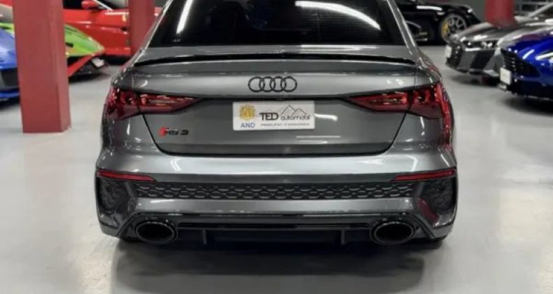 Audi RS3 Sedan 400cv Extres Frens ceràmics - Faros full Led Matrix - Canvi auto/sequencial - Llandes aleació negres - Pinces de fre gris - Navegador GPS - Sistema Hi-Fi Bang & Olufsen - Bluetooth tel/audio - Seients Audi Sport de cuir elèctrics amb memòria i calefactables - Costures vermelles - Detalls interiors vermells - Comptadors amb pantalla Digital Display - Climatització automàtica - Volant multifuncions d'alcantara - Regulador de velocitat adaptatiu - Sostre obert panoràmic - Mirall electrocròmic - Keyless, arancada sense clau - Sensor llums - Sensor de parking amb càmera 360 - Sensor de pluja - Retrovisors elèctrics - Vidres tintats - etc... Vehicle amb garantia Audi fins 2027 mesos. La liste des extras est uniquement indicative, elle peut être incomplète ou erronée.