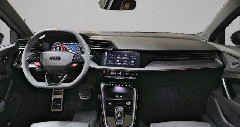 Cylindrée : 2480 cm3 Nb. Vitesse : 7 - Pack confort pro - Sièges AV à réglage électrique avec fonction mémoire pour le siège du conducteur - Rétroviseurs extérieurs réglables, dégivrants et rabattables électriquement jour/nuit automatique avec fonction mémoire *** Avec : Sièges AV réglables électriquement avec fonction mémoire pour le siège conducteur *** Avec : Rétroviseurs extérieurs réglables, dégivrants et rabattables électriquement jour/nuit automatique avec fonction mémoire - Pack Design RS Rouge Ceintures de sécurité avec bordure rouge, Volant plat/rond en alcantara avec surpiqûre rouge,Tapis complémentaires noirs avec inscription RS et surpiqûre contrastée rouge *** Avec : Tapis complémentaires noirs avec inscription RS et surpiqûres contrastées rouges *** Avec : Ceintures de sécurité avec bordure rouge *** Avec : Volant plat/rond en alcantara avec surpiqure rouge - Pack assistance route Système de protection proactive des occupants à l'AV, sur les côtés et à l'AR, Avertisseur de changement de voie avec avertissement d'ouverture de porte et assistant de circulation transversale *** Avec : Système de protection proactive des occupants AV/AR et sur les côtés *** Avec : Avertisseur de changement de voie avec avertissement d'ouverture de porte, et assistant de circulation transversale - Toit ouvrant panoramique - Système d'échappement sport RS - Projecteurs Matrix LED, blocs de feux AR à LED et lave-projecteurs - Jantes style à 10 branches en croix, noires métalisées 9,0J x 19pneus 265/30 AV, 8,0J x 19pneus 245/35 AR - Freins en acier RS avec étriers de frein en rouge avec inscription RS à l'AV - Système de contrôle de pression des pneus - Equipement extérieur RS en Noir Brillant - Boîtiers de rétroviseurs extérieurs dans la couleur de la carrosserie - Audi Connect navigation et divertissement plus - Audi park assist : cherche à l'aide de capteurs à ultrasons les places de stationnement (bataille et créneau) appropriées le long de la chaussée, calcule le créneau idéal et gère le braquage automatiquement - Climatisation automatique confort 2 zones - Jantes style à 5 branches en Y, noir mat 9,0J x 19pneus 265/30 AV, 8,0J x 19pneus 245/35 AR - MMI Navigation plus avec MMI touch - Pack Esthétique Noir plus Anneaux noirs et identification du modèle en noir *** Avec : Anneaux en noir *** Avec : Identification du modèler en noir - Pack Rangement - Boîte à gant verrouillable - Compartiment de rangement côté conducteur - Filet de rangement AR des sièges AV - Prise 12V dans la console centrale AR - Prise 12V dans le coffre - Filet de compartiment bagages - 2ème lumière LED à gauche du coffre à bagages *** Avec : Boîte à gants verrouillable *** Avec : Prise 12V dans le coffre *** Avec : Prise 12V dans la console centrale AR *** Avec : Compartiment de rangement côté conducteur *** Avec : Deuxième lumière LED à gauche du coffre à bagages *** Avec : Filet de rangement AR des sièges AV *** Avec : Filet de compartiment bagage - Pack éclairage d'ambiance pro Module de toit à AV et AR, y compris liseuses, Miroir de courtoisie éclairé, Éclairage d'ambiance des portes AV/AR, Eclairage des seuils de porte, Compartiment de rangement éclairé de la console centrale, Eclairage du plancher AV *** Avec : Eclairage des seuils de portes *** Avec : Module de toit AV/AR éclairé à LED, y compris liseuses *** Avec : Eclairage du plancher AV *** Avec : Miroir de courtoisie éclairé *** Avec : Compartiment de rangement éclairé de la console centrale *** Avec : Eclairage d'ambiance des portes AV/AR - Phares à LED avec clignotants dynamiques AR - Rétroviseur intérieur jour/nuit automatique sans encadrement - Rétroviseurs extérieurs réglables, dégivrants, rabattables électriquement avec fonction rabat automatique, (côté passager AV, marche AR enclenchée) et fonction jour/nuit automatique des deux côtés - Sellerie Dinamica/cuir mono.pur 550 - Variante de cuir Noir (habitacle) - Volant cuir Sport multifonctions plus 3 branches avec méplat en haut et en bas et palettes de commande au volant - 2 ports de charge USB AR - Accoudoir central AV coulissant en longueur, avec inclinaison réglable - Adaptative Cruise Control - Airbags latéraux AV et système d'airbags de tête - Alarme antivol - Alerte de sortie de voie avec assistance d'urgence - Appuis lombaires à 4 axes pour les sièges AV - Assistant de feux de route - Audi Connect Appel d'urgence - Audi Drive Select - Audi Hold Assist maintient le véhicule à l'arrêt aussi bien en côte qu?en descente au sein de la circulation routière, sans limite de temps - Audi Phone box light (chargeur sans fil avec standard QI) - Audi smartphone interface - Audi Sound System 10 HP incluant 1 HP central et 1 subwoofer, amplificateur à 6 canaux avec une puissance totale de 180 watts - Boitiers de rétroviseurs extérieurs noir - Caméra de recul - Ciel de pavillon en tissu Noir - Clé confort (avec safelock) - Combiné d'instruments numérique Digital Cockpit avec design spécifique RS supplémentaire 10,25 - Direction progressive - Dispositif de limitation de vitesse - Dossier de banquette AR rabattable en 2 parties - Détecteur de pluie et de luminosité - Ecrous de roues antivol - Eléments extérieurs RS en noir mat Spoiler AV en noir avec grille en losange en noir mat, grille de protection du radiateur à l'AV avec larges prises d'air en noir mat, lames latérales et inserts de bas de caisse en noir brillant, Insert de diffuseur AR en noir mat avec insert en noir brillant - Extérieur RS avec équipement extérieur RS en noir mat Calandre noir mat, Diffuseur noir mat - Hayon assisté électriquement pour l'ouverture et la fermeture - Inserts décoratifs en effet carbone Atlas Structure (au tableau de bord) - Pare-brise à vitrage athermique et acoustique avec bandeau pare-soleil Gris - Sièges AV réglables manuellement: Hauteur et positionnement en longueur, Inclinai