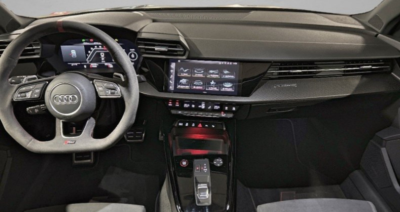 Cylindrée : 2480 cm3 Nb. Vitesse : 7 - Pack Design RS Rouge *** Avec : Tapis complémentaires noirs avec inscription RS et surpiqûres contrastées rouges *** Avec : Ceintures de sécurité avec bordure rouge *** Avec : Volant plat/rond en alcantara avec surpiqure rouge - Pack Fumeur *** Avec : Allume-cigare et cendrier - Toit panoramique - Suspension avec amortisseurs pilotés - Système d'échappement sport RS - Insert décoratif et surfaces accentuées en Carbone Atlas Mat (au tableau de bord) - Sièges AV réglables électriquement avec réglage électrique de l'hauteur d'assise, du positionnement en longueur, de l'inclinaison de l'assise et du dossier - Jantes style à 5 branches en Y noir avec impression graphique 9,0J x 19pneus 265/30 AV, 8,0J x 19pneus 245/35 AR - Phares Matrix LED avec clignotants dynamiques AV/AR - Vitrage Privacy : lunette AR, vitres de portières AR et vitres latérales AR surteintées - Airbags latéraux AR - Freins en acier RS avec étriers de frein en Rouge - Audi smartphone interface - Appuis lombaires à 4 axes pour les sièges AV - Audi Pre Sense Basic - Système de contrôle de pression des pneus - Audi phone box light - Boîtier de rétroviseurs en style aluminium - Audi Connect navigation et divertissement plus - Climatisation automatique confort 2 zones - Jantes style à 10 branches en Y gris platine, tournées brillantes 9,0J x 19pneus 265/30 AV, 8,0J x 19pneus 245/35 AR - MMI Navigation plus avec MMI touch - Pack Eclairage d'ambiance multicolore Le pack d'éclairage d'ambiance plus comprend l'éclairage intérieur de série en blanc: - Module de toit à LED, à l'AV et à l'AR, y compris les liseuses - Miroirs de courtoisie pour le conducteur et le passager AV, éclairés - Éclairage de la boîte à gants - Éclairage du compartiment à bagages *** Avec : Boîte à gants éclairée *** Avec : Eclairage à droite dans le coffre *** Avec : Module de pavillon AV et AR incluant spots de lecture - Pack Esthétique Noir - Pack Rangement *** Avec : Boîte à gants verrouillable *** Avec : Prise 12V dans le coffre *** Avec : Prise 12V dans la console centrale AR *** Avec : Compartiment de rangement côté conducteur *** Avec : Deuxième lumière LED à gauche du coffre à bagages *** Avec : Filet de rangement AR des sièges AV *** Avec : Filet de compartiment bagage - Phares à LED avec clignotants dynamiques AR - Rétroviseur intérieur jour/nuit automatique sans encadrement - Rétroviseurs extérieurs réglables, dégivrants, rabattables électriquement avec fonction rabat automatique, (côté passager AV, marche AR enclenchée) et fonction jour/nuit automatique des deux côtés - Sellerie Dinamica/cuir mono.pur 550 - Variante de cuir Noir - Volant cuir Sport multifonctions Plus 3 branches avec méplat et palettes de commande au volant - Accoudoir central coulissant en longueur, avec inclinaison réglable - Adaptative Cruise Control - Airbags latéraux AV et système d'airbags de tête - Alerte de sortie de voie - Appel d'urgence Audi connect - Assistant de feux de route - Audi Connect Appel d'urgence - Audi Drive Select - Audi Hold Assist - Audi Park Assist - Audi pre sense front - Audi Sound System 10 HP incluant 1 HP central et 1 subwoofer, amplificateur à 6 canaux avec une puissance totale de 180 watts - Banquette AR variable, 40:20:40 - Boîtiers de rétroviseurs extérieurs en Noir - Caméra de recul - Ciel de pavillon en tissu noir - Clé à fréquence radio (avec safelock) - Combiné d'instruments numérique Digital Cockpit avec design spécifique RS supplémentaire 10,25 - Commande de désactivation de l'airbag passager AV - Contrôle de la pression des pneus - Direction progressive - Dispositif de limitation de vitesse - Détecteur de pluie et de luminosité - Ecrous de roues antivol - Extérieur RS avec équipement extérieur RS en noir mat Calandre noir mat, Diffuseur noir mat - I-Size et Top Tether pour les sièges AR extérieurs - Inserts décoratifs en carbone Atlas Structure - Interface Bluetooth - Kit réparation - MMI Radio Plus - Pare-brise à vitrage acoustique - Rappel de ceinture de sécurité avec dispositif AR de détection d'occupation du siège - Réception radio numérique (DAB) - Sièges AV réglables manuellement: Hauteur et positionnement en longueur, Inclinaison de dossier, Hauteur des appuie-tête et des ceintures - Sièges AV Sport - Suppression d'identification moteur - Système d'alarme antivol - Sécurité enfant électrique - Tapis de sol AV/AR - Trousse de secours