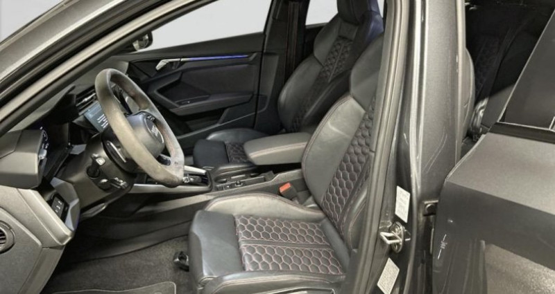 Audi RS3 Sportback 2.5 TFSI 400 S tronic 7 Quattro berline, gris, 28 cv, 5 portes, couleur intérieure : noir, première mise en circulation le 02/03/2022, garantie 12 mois. 5 places, longueur : 4 389,00 mètre(s), poids en charge : 1645 kg OPTIONS ET ÉQUIPEMENTS : Audio - Télécommunications : - Appel d'urgence Audi connect - Audi Connect Appel d'urgence - Audi Connect navigation et divertissement plus - Audi phone box - Audi smartphone interface - MMI Navigation plus avec MMI touch - MMI Radio Plus - Bluetooth - radio numérique Conduite : - Adaptative Cruise Control - Audi Drive Select - Audi Hold Assist - Audi Park Assist - détecteur de pluie Extérieur : - Assistant de feux de route - Diffuseur noir mat - Hayon assisté électriquement pour l'ouverture et la fermeture - Jantes style à 10 branches en Y gris platine - Phares Matrix LED avec clignotants dynamiques AV/AR - Rampes de pavillon Noires - Système d'échappement sport RS - vitres de portières AR et vitres latérales AR surteintées - à l'AV et à l'AR - caméra de recul - phares à LED Intérieur : - (côté passager AV - Banquette AR variable - Direction progressive - Inclinaison de dossier - Pack Rangement - Pare-brise en vitrage athermique - Pare-brise à vitrage acoustique - Rétroviseur intérieur jour/nuit automatique sans encadrement - Sièges AV Sport - Sièges AV chauffants - Sécurité enfant électrique - Vitrage Privacy : lunette AR - accoudoir central - climatisation : automatique - volant cuir Pack : - Boîtiers de rétroviseurs extérieurs en Noir - Ciel de pavillon en tissu noir - Dispositif de limitation de vitesse - Ecrous de roues antivol - Freins en acier RS avec étriers de frein en Rouge - Inserts décoratifs en carbone Atlas Structure - Kit réparation - Pack Esthétique Noir - Pack noir plus - Rétroviseurs extérieurs réglables - Suppression d'identification moteur - Suspension avec amortisseurs pilotés - Trousse de secours - Cockpit numérique - PTAC : 2075 kg - Pack Design RS Rouge - tapis de sol Sécurité : - Alerte de sortie de voie - Audi pre sense front - Contrôle de la pression des pneus - Système de lecture des panneaux de signalisation par caméra - Protection proactive des occupants - airbag coté passager - airbags latéraux - alarme Autres équipements et informations : - 1 HP central et un subwoofer - 40:20:40 - 8 - Audi Sound System 10 HP incluant 1 HP central et 1 subwoofer - Bang & Olufsen Premium Sound System avec son 3D Restitution sonore grâce à 17 HP incluant des HP au son 3D - Clé à fréquence radio (avec safelock) - Extérieur RS avec équipement extérieur RS en noir mat Calandre noir mat - Hauteur des appuie-tête et des ceintures - I-Size et Top Tether pour les sièges AR extérieurs - Pack Eclairage d'ambiance multicolore Le pack d'éclairage d'ambiance plus comprend l'éclairage intérieur de série en blanc: - Module de toit à LED - Rappel de ceinture de sécurité avec dispositif AR de détection d'occupation du siège - Sellerie Dinamica/cuir mono.pur 550 - Sellerie en cuir Nappa fin avec surpiqûres contrastés et embossé RS - Sièges AV réglables manuellement: Hauteur et positionnement en longueur - Variante de cuir Noir - ainsi qu'un amplificateur à 16 canaux d'une puissance totale de 730 watts - amplificateur à 6 canaux avec une puissance totale de 180 watts - dégivrants - marche AR enclenchée) et fonction jour/nuit automatique des deux côtés - rabattables électriquement avec fonction rabat automatique - tournées brillantes 9 - y compris les liseuses - Miroirs de courtoisie pour le conducteur et le passager AV - éclairés - Éclairage de la boîte à gants - Éclairage du compartiment à bagages - 0J x 19pneus 245/35 AR - 0J x 19pneus 265/30 AV - Classe Crit'air : 1 - Largeur : 1 851,00 mètre(s) - Norme euro émission : Euro 6 - Puissance kilowatt : 294 kw - Type transmission : toutes roues motrices - accélération 0-100 kmh : 3,80 s - dimension des jantes : 19 pouces - disposition des cylindres : ligne - hauteur : 1 436,00 mètre(s) - kilométrage garanti - nombre de rapports : 7 vitesses - nombres de cylindres : 5 cylindres - origine pays : MCO - puissance réelle : 400 ch - volume du coffre : 282,00 litres - véhicule importé - émission CO2 (wltp) : 206 g/km Référence annonce : 2000103_lux
