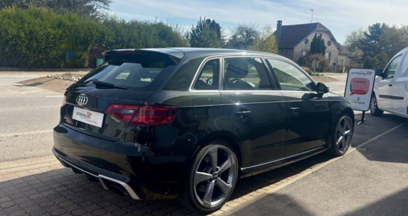 Envie de sensations ? Elle est déjà prête. À L’Agence Automobilière de Saint-Dié, on sélectionne des véhicules qui ont une vraie personnalité. Découvrez cette Audi RS3 Sportback 2.5 TFSI 367 ch Quattro : un concentré de performance et de caractère. Moteur 5 cylindres mythique, transmission Quattro redoutable, sonorité envoûtante : elle transforme chaque trajet en expérience. Plus qu’un véhicule… une émotion à chaque accélération. * Entretien à jour chez des professionnels * Moteur : 5 cylindres en ligne 2.5 TFSI turbo * Transmission : Quattro (4 roues motrices) + boîte S tronic 7 rapports * Jantes 19 pouces RS * Projecteurs xénon / LED * Volant sport multifonction méplat RS Cuir Alcantara * Climatisation automatique bizone * Ordinateur de bord + instrumentation spécifique (boost, température huile, etc.) * Système MMI (écran + commandes rotatives) * Bluetooth + USB * Audi Drive Select (modes de conduite) * Échappement sport à clapets * Freins carbone-céramique * Garantie 3 mois , possibilité jusqu'à 60 mois * Reprise possible Equivalence : Mercedes-AMG A45 / BMW M135i xDrive / BMW M2 / Volkswagen Golf R Tags : RS 3 367ch 367cv 367 ch 367 ch 4x4 sportive Prix ??: Hors carte grise (selon département), frais de mise à la route de 549€ (désinfection et nettoyage pro, garantie, dossier carte grise, sécurisation des paiements,...) ==================== EQUIPEMENTS ==================== - 4x4 - ABS - Accoudoir - Aide au démarrage en côte - Airbag(s) - Allumage automatique des feux - Anti-brouillards - Banquette rabattable 1/3-2/3 - Bluetooth - Châssis sport - Climatisation automatique - Climatisation automatique bi-zone - Commande vocale - Compteur numérique - Direction assistée - Détecteur de pluie - Détecteur de somnolence - Détecteur pression des pneus - ESP - Fermeture centralisée - Feux de jour - Fixation Isofix - Frein à main électrique - HiFi - Intérieur cuir - Jantes aluminium - Ordinateur de bord - Palettes au volant - Peinture nacrée - Phares Full LED - Prise USB - Radar de stationnement avant et arrière - Régulateur de vitesse - Rétroviseur intérieur jour nuit - Rétroviseurs dégivrants - Rétroviseurs rabattables électriquement - Sièges sport - Téléphone - Vitres surteintées - Vitres électriques avant et arrière - Volant cuir - Volant multifonctions - Volant sport Nb. Places : 5