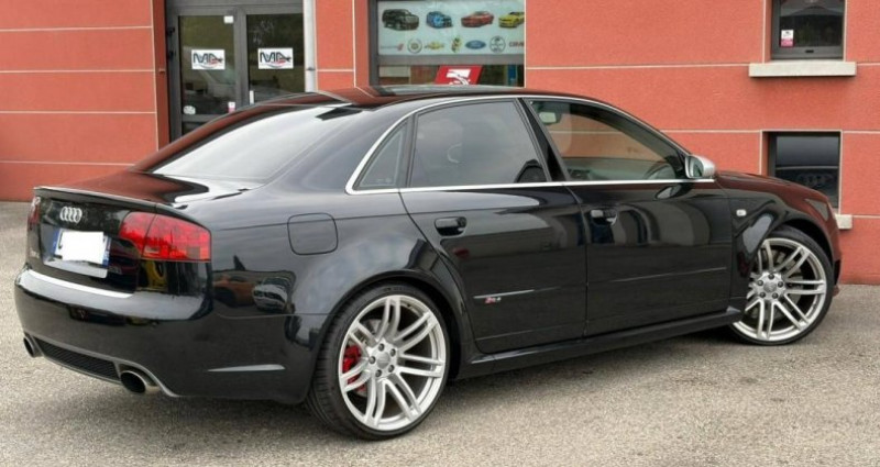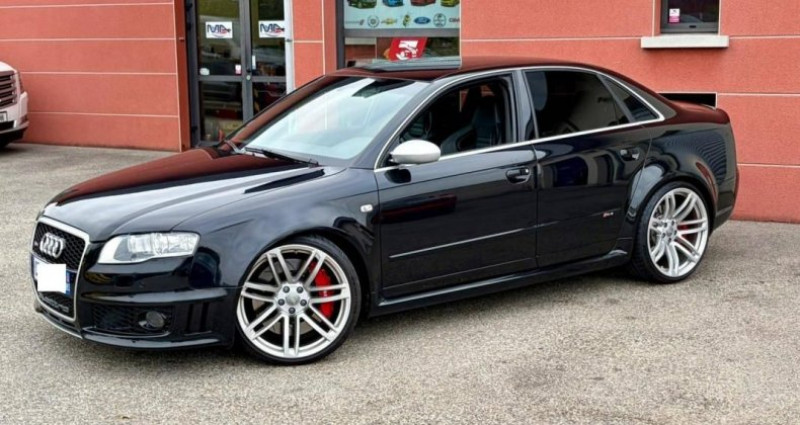 Audi RS4 V8 4.2 Berline Pack F1 / Française berline, noir, 33 cv, 4 portes, première mise en circulation le 16/03/2007, garantie 12 mois. ? VEHICULE DISPONIBLE SUR NOTRE PARC DE BOURG LES VALENCE ? ?? 100% des véhicules que nous vous proposons sont soit issus de notre stock direct, soit chez nos partenaires en France. Nous ne diffusons aucun véhicule virtuel. Rarissime Audi RS4 Berline 4.2 V8 Boite manuelle mise en circulation en Mars 2007. Seulement 145900 Kilomètres d'origine ! Origine France, suivi complet et traçabilité limpide depuis la mise en circulation. très belle configuration : - Pack F1 - Pack Carbone - Jantes RS6 - Gros freinage - Echappement Milltek - etc... état proche du neuf, un des plus beaux exemplaires en vente sur le marché. Vendue révisé et garantie, tout consommables à jour Plus d'informations par téléphone, visible sur RDV. Lauris ***************************************** LAURIS AUTO PASSION LAP Auto est spécialisé dans l'import, l'expertise et la vente de véhicules d'intérêt en France. Notre magasin est situé à Valence, sur l'axe A7 à 5 minutes de la sortie 14 Valence Nord. Nos services : - Achat - Vente véhicules neufs et d'occasion - Vente d'accessoires - Mécanique / Entretien Nos horaires : - du lundi au samedi : 8h30-12h00 / 13h30-18h00 ***************************************** LAP selon ses clients : sur 47 avis ***************************************** Si ce véhicule ne répond pas exactement à vos exigences, nous faisons également des recherches personnalisées. Pour cela il vous suffit de nous transmettre vos critères, (modèle, année, kilométrage, couleur et options souhaités). ** Nous ne pouvons garantir l'exactitude de l'ensemble des informations ci-dessus. Il arrive qu'une erreur de saisie puisse se produire ** ***************************************** poids en charge : 1650 kg, contrôle technique : OK, carnet d'entretien OPTIONS ET ÉQUIPEMENTS : Pack : - nombre de rapports : 6 vitesses Autres équipements et informations : - Classe Crit'air : 2 - Puissance kilowatt : 309 kw - puissance réelle : 420 ch - émission CO2 : 322 g/km Référence annonce : 141