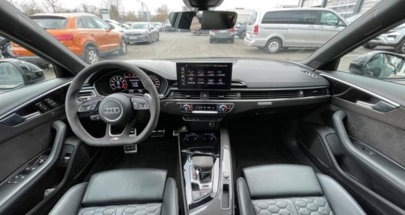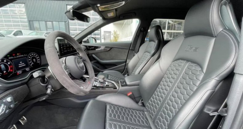 ======= OPTIONS ======= Affichage tête haute Aide au stationnement avant et arrière + caméra de recul Augmentation de la vitesse de pointe à 280 km h Bang & Olufsen sound system avec son en 3D Freins céramique RS avec étriers de frein en bleu avec inscription Audi ceramic à l?avant et inscription RS à l?arrière Jantes aluminium forgé, 5 branches en drapeau, 20 Pack Assistance Route Pack Dynamique RS Pack Esthétique carbone & noir brillant Pack Esthétique noir brillant Pack RS Design Gris Peinture métallisée Sellerie en cuir Nappa fin avec surpiqûres alvéolées Sièges avant et arrière chauffants Sortie d?échappement Sport RS double flux, avec embouts ovales noir brillant Vitres arrières surteintées (vitrage privacy) ======= EQUIPEMENTS DE SERIE ======= Audi smartphone interface Audi virtual cockpit plus Pack Eclairage d'ambiance Phares Matrix LED, feux arrière à LED et lave-phares Nb. Vitesses : 8 Conso Mixte : l/100