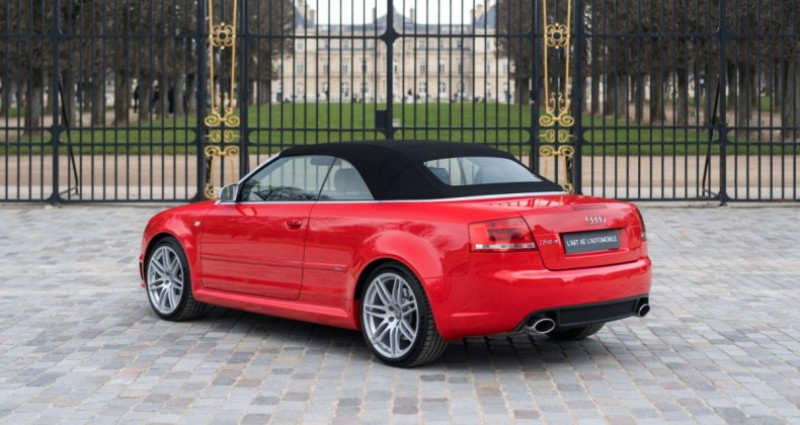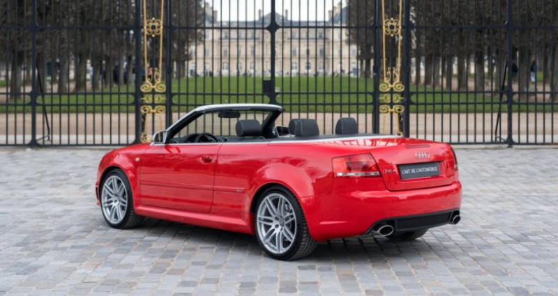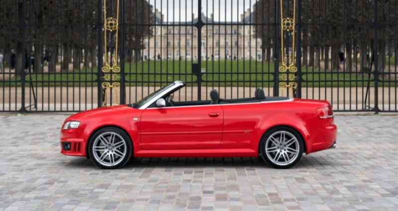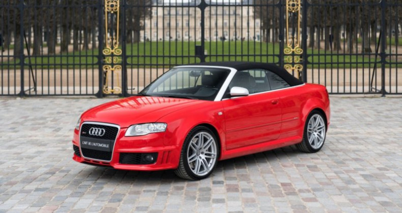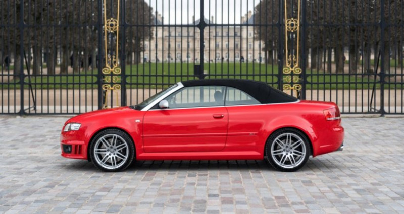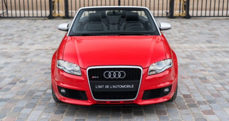 OPTIONS ============== 7S1 Déflecteur de vent 4GF Pare-brise athermique 6E7 Accoudoir central avant 4A3 Sièges avant chauffants CV7 Jantes en aluminium 18 9AK Climatisation automatique 5MN Inserts décoratifs en carbone 3L5 Réglage électrique des sièges avant 7P1 Soutien lombaire à réglage électrique 2MC Châssis sport avec amortissement variable 8Q3 Correcteur d'assiette des phares dynamique 4K4 Verrouillage centralisé avec télécommande radio 6XD Rétroviseurs extérieurs électriques et chauffants 7X2 Aide au stationnement à ultrasons avant et arrière 1N3 Direction assistée asservie à la vitesse (Servotronic) Q1D Sièges sport en cuir lisse avec fonction mémoire étendue 9ZF Préparation pour téléphone mobile VDA avec kit mains libres INFORMATIONS ============== Excellent état Révision à jour Peinture d'origine Superbe configuration Carte grise française, CoC Carnet, notices, double de clésSuivi et entretien :Le 22/06/2007 - inspection avant livraison par Audi AG Neckarsulm Le 26/06/2009 à 28 858 kms par Audi Service Kolkwitz Le 28/06/2011 à 56 139 kms par Audi Service Kolkwitz Le 12/07/2013 à 77 418 kms par Audi Service Walldorf Le 07/08/2015 à 106 805 kms par Audi Service Walldorf Le 17/01/2017 à 113 415 kms par Prenium Classics à Vught Le 31/07/2017 à 117 642 kms par Audi Service Groningen Le 01/08/2019 à 125 357 kms par Schouten Autobedrijf à Ermelo Le 24/03/2021 à 127 363 kms par Weijgertze Auto Technik BV à Wijk en Aalburg Le 01/05/2025 à 127 400 kms par HooG Selections à Katwijk aan ZeeNous proposons à la vente un modèle original, l'Audi RS4 B7 dans sa rare déclinaison Cabriolet. Cette auto arbore la très belle teinte nacrée Rouge Misano, associée à un intérieur en cuir noir. Cette RS4 est encore entièrement en première peinture ! Elle a parcouru 133 800 kms, a été régulièrement suivie et se présente en excellent état général. Elle est à jour de révision et est très bien équipée avec les sièges chauffants, l'audio BOSE, les inserts décoratifs en carbone, les capteurs de stationnement, les sièges Sport en cuir, ...La troisième génération de l'Audi RS4 est présentée au public en 2005 au Salon de Francfort puis au Salon de Détroit. Cette génération B7 sera rapidement déclinée en Cabriolet l'année suivante. Produite jusqu’en 2008, elle se distingue par l’association rare d’un V8 atmosphérique, de la transmission intégrale Quattro et d’une carrosserie cabriolet pour la première fois, offrant des performances dignes de ce nom avec le plaisir de rouler à ciel ouvert.Sous le capot, on retrouve le fabuleux V8 atmosphérique 4,2L FSI développant 420 ch pour 430 Nm de couple, avec une boîte manuelle à 6 rapports et à la transmission intégrale permanente. Le 0 à 100 km/h est abattu en seulement 4,9 secondes avec une vitesse maximale électroniquement bridée à 250 km/h. Avec un poids d’environ 1 845 kg, elle reçoit un châssis plus sportif avec des freins adaptés à ses performances.INFORMATIONS IN ENGLISHFirst paint Superb spec Up-to-date service Excellent condition Registered in France, CoC Service book, manuals, spare keyService history:On 06/22/2007 - pre-delivery inspection by Audi AG Neckarsulm On 06/26/2009 at 28,858 kms by Audi Service Kolkwitz On 06/28/2011 at 56,139 kms by Audi Service Kolkwitz On 07/12/2013 at 77,418 kms by Audi Service Walldorf On 08/07/2015 at 106,805 kms by Audi Service Walldorf On 01/17/2017 at 113,415 kms by Prenium Classics in Vught On 07/31/2017 at 117,642 kms by Audi Service Groningen On 08/01/2019 at 125,357 kms by Schouten Autobedrijf in Ermelo On 03/24/2021 at 127,363 kms by Weijgertze Auto Technik BV in Wijk en Aalburg On 05/01/2025 at 127,400 kms by HooG Selections in Katwijk aan ZeeWe are offering for sale a coveted model, the Audi RS4 B7 in its rare Cabriolet version. This car features the beautiful pearlescent Misano Red color, paired with a black leather interior. This RS4 is still entirely in its first paint! It has covered 133,800 kms, has been regularly maintained, and is presented in excellent overall condition. Its service is up-to-date and the car is very well equipped with heated seats, BOSE sound system, carbon decorative inserts, parking sensors, leather Sport seats, ...The third generation of the Audi RS4 was unveiled to the public in 2005 at the Frankfurt Motor Show and then at the Detroit Motor Show. This B7 generation was quickly offered as a Cabriolet the following year. Produced until 2008, it stands out for the rare combination of a naturally aspirated V8 engine, Quattro all-wheel drive, and for the first time a convertible body style, delivering true performance along with the pleasure of open-top driving.Under the hood is the fabulous naturally aspirated 4.2L FSI V8 producing 420 hp and 430 Nm of torque, paired with a 6-speed manual gearbox and permanent all-wheel drive. The 0 to 60 mph is completed in just 4.9 seconds, with a top speed electronically limited to 155 mph. With a weight of approximately 1,845 kg, it features a sportier chassis and brakes suited to its performance.