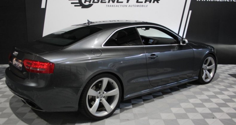 ======= OPTIONS ======= Pack design carbone Sièges avant électriques et conducteur à mémoire 2 combinaisons + rétroviseurs extérieurs à mémoire, dégivrants, jour nuit automatique et escamotables ; buses de lave-glace chauffantes Vitesse limitée électroniquement à 280 km h au lieu de 250 km h 4 ?illetons de fixation dans le coffre, pour maintenir les bagages et objets ; points d'accrochage pour le filet mixte caméra de recul Z - FRAIS DE DOSSIER - 690? Accoudoir central avant avec vide-poches et 2 prises 12 V Alarme antivol : surveille l'habitacle, autoradio, portes, capot moteur et de coffre Antipatinage ASR : empêche le patinage des roues motrices ; assure une motricité optimale Applications décoratives en carbone sur contre-portes et console centrale Audi Hold Assist : système désactivable maintenant le véhicule à l'arrêt en descente comme en côte; permet un redémarrage confortable sans mettre le frein à main Blocage électronique de diff érentiel EDS, aide au démarrage intervenant jusqu'à une vitesse d'environ 100 km h Boîte automatique S tronic 7 vitesses à double embrayage, passage en mode manuel possible à l'aide du sélecteur ou des palettes situées derrière le volant Calandre Singleframe : grille anthracite brillante en structure nid d'abeilles et cadre en aluminium mat Châssis Sport RS avec suspension et amortisseurs plus fermes pour un contact plus direct avec la chaussée et une conduite sportive Climatisation automatique Confort 3 zones à fonctionnalités étendues et affichage numérique Contrôle de la pression des pneumatiques Détecteur de pluie et allumage automatique des projecteurs Direction assistée Servotronic Etriers de freins laqués noir avec logo RS 5 Feux de route assistés : gestion automatique du passage de feux de croisement à pleins phares et inversement Frein de stationnement electromécanique GPS Plus : système de navigation GPS Indicateur d'usure des disques à l'avant Inscriptions RS 5 sur les seuils de portes, les étriers de freins, la calandre, la malle de coffre, le volant, le levier de vitesses S tronic, le compte-tours et la clé Jantes en aluminium coulé style RS, 5 branches Structure, 9 J x 19, avec pneus 265 35 R19 Lève-vitres électriques à l'avant avec protection antipincement, fonction ouverture fermeture confort par impulsions ; vitres arrière fixes Ordinateur de bord couleur et contrôle Autocheck Pack Eclairage Pommeau de levier de vitesses en cuir perforé avec badge RS 5 ; soufflet en cuir avec surpiqûres gris pierre Programme de stabilité électronique (ESP) Quattro : transmission intégrale permanente avec répartition asymétrique et dynamique de couple Régulateur de vitesse Rétroviseurs extérieurs avec clignotant latéral intégré à diodes, réglable électriquement, boîtiers style aluminium, miroir asphérique Sellerie cuir Nappa satiné avec passepoils gris pierre sur sièges avant arrière ; surpiqûres gris pierre sur l'accoudoir central avant et le soufflet de levier de vitesses S tronic Servotronic : direction assistée asservie à la vitesse Sideguard, système d'airbags de tête grand format Sièges avant électriques pour longueur, hauteur, inclinaison d'assise et de dossier Sièges Sport S à l'avant avec appuis-têtes intégrés Sorties d'échappement ovales à gauche et à droite Système antiblocage ABS avec répartiteur électronique de freinage EBV Système audiophonique Audi Tapis complémentaires en velours à l'avant, assortis à la couleur de la moquette Vitres athermiques teintées vertes, pare-brise en verre feuilleté Volant Sport multifonction en cuir perforé style 3 branches avec emblème RS 5, surpiqûres contrastées gris pierre, palettes de changement de vitesse style aluminium pour S tronic derrière le volant, airbag grand volume, réglable en hauteur et en profondeur Xénon Plus incluant réglage automatique du site des phares, feux diurnes par bandeau de LED et lave-phares, feux arrière à LED pour feux de position et de stop ======= EQUIPEMENTS DE SERIE ======= 4 illetons de fixation dans le coffre, pour maintenir les bagages et objets ; points d'accrochage pour le filet mixte caméra de recul Z - FRAIS DE DOSSIER - 690 Accoudoir central avant avec vide-poches et 2 prises 12 V Alarme antivol : surveille l'habitacle, autoradio, portes, capot moteur et de coffre Antipatinage ASR : empêche le patinage des roues motrices ; assure une motricité optimale Applications décoratives en carbone sur contre-portes et console centrale Audi Hold Assist : système désactivable maintenant le véhicule à l'arrêt en descente comme en côte; permet un redémarrage confortable sans mettre le frein à main Blocage électronique de diff érentiel EDS, aide au démarrage intervenant jusqu'à une vitesse d'environ 100 km h Boîte automatique S tronic 7 vitesses à double embrayage, passage en mode manuel possible à l'aide du sélecteur ou des palettes situées derrière le volant Calandre Singleframe : grille anthracite brillante en structure nid d'abeilles et cadre en aluminium mat Châssis Sport RS avec suspension et amortisseurs plus fermes pour un contact plus direct avec la chaussée et une conduite sportive Climatisation automatique Confort 3 zones à fonctionnalités étendues et affichage numérique Contrôle de la pression des pneumatiques Détecteur de pluie et allumage automatique des projecteurs Direction assistée Servotronic Etriers de freins laqués noir avec logo RS 5 Feux de route assistés : gestion automatique du passage de feux de croisement à pleins phares et inversement Frein de stationnement electromécanique GPS Plus : système de navigation GPS Indicateur d'usure des disques à l'avant Inscriptions RS 5 sur les seuils de portes, les étriers de freins, la calandre, la malle de coffre, le volant, le levier de vitesses S tronic, le compte-tours et la clé Jantes en aluminium coulé style RS, 5 branches Structure, 9 J x 19, avec pneus 265 35 R19 L