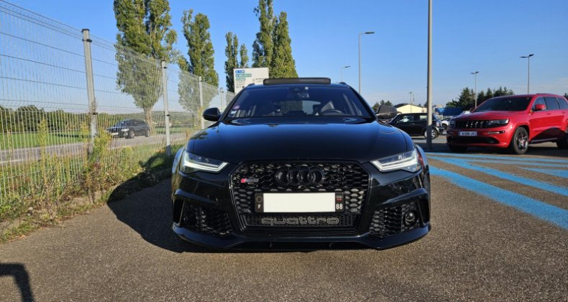 ======= OPTIONS ======= Audi Active Lane Assist Audi Matrix LED Audi Park Assist Bose surround sound (14 HP 600 W) Affichage tête haute à LED Colonne de direction réglable électriquement en hauteur et en profondeur et à mémoire Fermeture assistée des portières Fixations pour sièges enfant ISOFIX sur le siège passager avant + désactivation de l'airbag passager Freins céramique 19'' renforcés de fibres de carbone (plus endurants et plus résistants à la déformation et aux températures extrêmes) à l'avant et à l'arrière Keyless entry KEYLESS-GO : système de démarrage sans clé Pack design carbone Pack dynamique plus Pack esthétique noir Pack esthétique noir avec inscription quattro Sièges avant et arrière chauffants Toit ouvrant panoramique en verre coulissant et entrebâillable électriquement Tapis de sol avec logo RS : tapis noir avec logo RS brodé, liseré et surpiqûres noir Vision périphérique (360°) Vitrage acoustique Vitrage acoustique, isolant et surteinté ======= EQUIPEMENTS DE SERIE ======= ABS (Antiblocage de roues) Accoudoir central arrière, rabattable, avec espace de rangement Accoudoir central avant avec porte-boisson intégré et espace de rangement Accoudoirs des portières en cuir Airbags frontaux grand volume conducteur et passager Alarme antivol avec protection antidémarrage électronique, antiremorquage, protection volumétrique à ultrasons et sirène indépendante Applications décoratives en carbone Assistance hydraulique au freinage d'urgence Audi drive select : commande la configuration de la direction, du moteur, de la transmission et de la suspension du véhicule modifiables selon 5 modes Audi Parking System Plus avec caméra de recul Châssis Sport avec Dynamic ride control : 3 réglages (confort, dynamique et sport) réduisent le tangage et le roulis Ciel de pavillon en tissu noir Clé radiocommandée avec ouverture fermeture confort pour les vitres électriques et le toit ouvrant coulissant Clignotants avec fonction autoroute : une brève impulsion sur le comodo active 3 cycles de clignotement Climatisation automatique 4 zones Coffre à bagages à déverrouillage et ouverture automatiques Contrôle de la pression des pneus avec signaux de perte de pression Cylinder on demand Démarrage et arrêt du moteur par simple impulsion sur le bouton moteur Start Stop EBV (répartiteur de freinage) Eclairage intérieur à temporisation à l'avant et à l'arrière EDS (blocage électronique de différentiel) Fermeture du hayon assistée électriquement Feux de route assistés : gestion automatique du passage de feux de croisement à pleins phares et inversement Frein de stationnement electromécanique Pack coffre Pare-Brise feuilleté Athermique Pare-chocs avant et arrière au design résolument spécifique RS Pare-soleil avec miroirs de courtoisie éclairés, conducteur et passager avant Protections latérales anticollision Réglages électriques du support lombaire Régulateur de vitesse avec fonction freinage Rétroviseurs extérieurs avec clignotants à LED électriques, à mémoire, dégivrants, rabattables et jour nuit automatique Sièges avant Sport S Système d'échappement Sport : sorties d'échappement ovales et noires brillant ; pour une qualité sonore accrue Système de récupération d'énergie générée lors des phases de freinage ou de décélération système Start Stop Tire Mobility System : compresseur et produit de colmatage en cas de crevaison Volant Sport multifonction 3 branches en cuir avec méplat et palettes de changement de vitesses Nb. Vitesses : 8 Conso Mixte : l/100