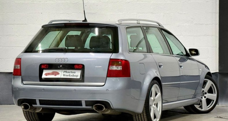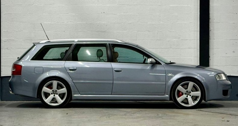 Cylindrée : 4200 cm3 - Climatisation automatique - Régulateur de vitesse - Système de navigation - Sellerie cuir - Sièges avant chauffants - Sièges électriques à mémoire - Toit ouvrant électrique - Vitres électriques - Rétroviseurs électriques et dégivrants - Jantes alliage 18 pouces - Ordinateur de bord - Système audio Bose - Airbags frontaux et latéraux - ESP (Contrôle électronique de stabilité) - ABS (Antiblocage des roues) - Phares au xénon - Feux automatiques - Essuie-glaces automatiques - Aide au stationnement arrière - Volant multifonctions - Direction assistée - Verrouillage centralisé à distance - Système antidémarrage électronique - Roue de secours - Répartiteur électronique de freinage (EBD) - Radars de stationnement arrière - Radars de stationnement avant - Etat: Courroie de distribution à jour - Etat: Disque arrières neuf - Etat: Disques avant neuf - Etat: Entretien et révision OK - Etat: Plaquettes arrières neuf - Etat: Plaquettes avant neuf - Etat: Pneu arrières neuf - Etat: Pneus avant neuf - Etat: Pompe a eau neuf - Service Carte Grise - Véhicule en dépôt-vente - - - - - - - - - - - - - - - - - - - - - - - - - Descriptif et photos en cours de rédaction Phaeton Workshop : Découvrez la Légende Audi RS6 C5 Avant - Une Pure Bombe Technologique ! Phaeton Workshop, votre spécialiste en véhicules de sport, à l' honneur de vous proposer à la vente cette Audi RS6 C5. Quand on évoque le nom de RS6, on pense immédiatement au break le plus sportif du marché. En 2002, lors de sa présentation par Audi, celle-ci proposait également une version break de la RS6 pour concurrencer directement les Mercedes E63 et BMW M5, mais avec une recette plus épicée : quatre roues motrices, un V8 bi-turbo développé par Cosworth offrant une puissance de 450 ch et une motricité à toute épreuve, le tout couplé à une boîte Tiptronic à 5 rapports. Cette RS6 dispose d’une configuration particulièrement élégante : un extérieur en gris et un intérieur en cuir beige. Elle est dotée de jantes d’origine en très bel état, du toit ouvrant, d' un ciel de toit en alcantara, du système audio Bose Concert, de sièges baquets Recaro électriques et chauffants, d' une alarme, d' optiques au xénon, d' un détecteur de pluie, d' un régulateur de vitesse, de capteurs d' aide au stationnement, et bien d' autres options. L’exemplaire que nous vous proposons est particulièrement bien entretenu et se trouve dans un superbe état. Un dossier complet de factures est disponible, attestant du soin apporté à ce modèle pour près de 50 000€ d’entretien. N’hésitez pas à nous contacter pour en savoir plus. Découvrez là en vrai : Dossier photo complet sur demande. Vidéo immersive sur notre chaine YouTube Phaeton Workshop Historique : 2009 - 29 667 kms : révision moteur + jeu de tapis + plaques d’immatriculation 2010 - 35 980 kms : révision moteur 2011 - 42 734 kms : remplacements pneumatiques + révision moteur 2011 - 44 844 kms : géométrie 2012 - 49 665 kms : remplacement des 2 soufflets de cardan avant 2012 - 49 704 kms : réfection tringlerie d’essuie-glace 2012 - 55 747 kms : révision moteur + filtre à air et essence + bougies d’allumage 2012 - 55 804 kms : repositionnement ligne d’échappement + géométrie 2013 - 58 721 kms : remplacement pompe a eau + sonde lambda + régulateur d’eau 2013 - 66 099 kms : remplacement disques et plaquettes de freins avant + plaquettes arrière 2014 - 75 707 kms : vidange moteur + révision + réglage hauteur amortisseurs + géométrie + balai d’essuie-glace + vidange de boite avec tamis 2014 - 76 341 kms : remplacement de parebrise 2015 - 84 120 kms : remplacement d’une durite de direction assistée 2015 - 92120 kms : demande de code autoradio 2017 - 98 050 kms : vidange + révision + vidange de boit et pont 2020 - : échangeur + palier caoutchouc + débitmètre 2025 - 115 200 kms : distribution + disques et plaquettes av & ar + Défauts constatés (voir dossier photos) : - Serrure porte conducteur tou e dans le vis mais fonctionne avec la centralisation - Miroirs de rétroviseurs décolorés - Jante arrière droite rayée - Ciel de toit légèrement détendu - Bouton de tableau de bord légèrement usé - Fixation anti chute du bouchon de réservoir cassé - Légère rayure sur le parechoc avant
