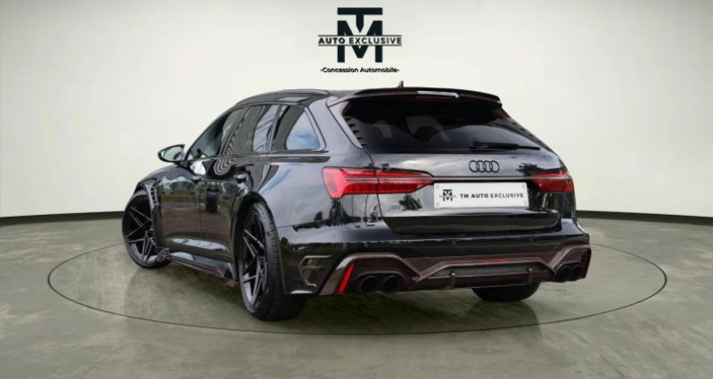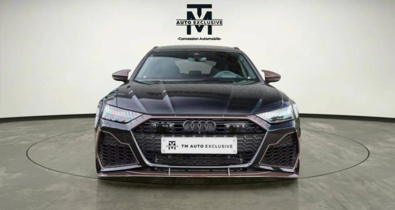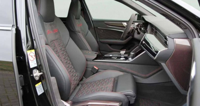 Cylindrée : 3996 cm3 Nb. Vitesse : 8 - Accoudoir central confort AV avec inclinaison réglable et coulissant en longueur - Affichage tête haute - Airbags latéraux à l'AV et à l'AR incluant système d'airbags de tête et boucles de ceinture éclairée - Appel d'urgence et service Audi connect avec commande du véhicule - Applications décoratives en Aluminium Racing Anthracite - Appuie-tête à l'AV - Appui lombaire à 4 axes pour les sièges AV: réglages électrique, horizontal et vertical - Audi Adaptive Air Suspension Sport - Audi Connect avec carte SIM intégrée (e-SIM) et licence d'utilisation pour 3 ans - Audi Drive Select Permet de sélectionner différents modes de conduite: Efficiency, Confort, Dynamic, Lift, Individual. Les systèmes et équipements du véhicules s'adaptent suivant le mode sélectionné - Audi Music Interface à l'AV et l'AR - Audi parking system plus avec indicateur de zone environnante - Audi phone box - Audi Pre Sense Basic - Audi Pre Sense front - Audi smartphone interface - Audi Virtual Cockpit - Avertissement de franchissement de ligne - Badge identification du modèle - Bang & Olufsen Advanced Sound System avec son 3D - Bang & Olufsen Premium Sound System avec son 3D Restitution sonore grâce à 17 HP incluant des HP au son 3D, 1 HP central et un subwoofer, ainsi qu'un amplificateur à 16 canaux d'une puissance totale de 730 watts - Banquette AR divisée en 3 parties 40/20/40 avec accoudoir central - Boitiers de rétroviseurs extérieurs en aluminium mat - Caméras périphériques: 4 caméras grand angle couvrent l'ensemble de la zone autour du véhicule - Chauffage des sièges AV - Chauffage des sièges AV et AR - Ciel de pavillon en tissu Noir - Clé Audi connect - Clé confort incluant déverrouillage du coffre par capteur (avec safelock) - Climatisation automatique confort 4 zones - Commande de désactivation de l'airbag passager AV - Direction intégrale dynamique - Ecrous de roues antivol et indicateur de desserrage d'écrous - Eléments de l'habitacle supérieurs et inférieurs en simili-cuir - Fixation pour sièges enfants ISOFIX et Top Tether pour les places AR extérieures - Fixation pour sièges enfants ISOFIX pour le siège passager AV - Freins en acier RS avec étriers de frein en rouge brillant - Hayon de coffre à ouverture et fermeture électrique - Jantes en aluminium coulé, style 10 branches en étoile 10,5Jx21 avec pneus 275/35 R21 - Johann ABT Signature *** Avec : Johann ABT Signature ABT Aérodynamique Lèvre avant ABT incluant des ailerons de lèvre avant ABT (Signature Carbon Red) Lames avant ABT (Signature Carbon Red) Inserts de tablier avant ABT incluant un flux d'air optimisé (Signature Carbon Red) Fixation de calandre avant ABT (Signature Carbon Red) Coques de rétroviseurs ABT (Signature Carbon Red) Jupes latérales avant ABT, lames latérales arrière ABT (Signature Carbon Red) Inserts de jupes latérales ABT (Signature Carbon Red) Aération des passages de roue ABT avant et arrière (Signature Carbon Red) Insert de tablier arrière ABT (Signature Carbon Red) Jambe de force décorative arrière ABT (Signature Carbon Red) Becquet arrière ABT avec couvercles aérodynamiques et lèvre de becquet arrière (Signature Carbon Red) Sièges avant raffinés ABT avec logo ABT en relief sur l'appuie-tête et logo Signature Edition Sièges arrière raffinés ABT avec logo ABT en relief sur l'appuie-tête et logo Signature Edition Panneaux de porte avant et arrière raffiné - Lave phares haute pression - Moulures de seuils RS avec insert en aluminium AV/AR, éclairées - Navigation MMI avec MMI touch Le système de navigation MMI plus avec MMI touch offre : - l'écran panoramique MMI avec technologie OLED, comprenant l'Audi virtual cockpit plus avec écran de 11,9 pouces ainsi que l'écran MMI touch de14,5 - système de navigation avec affichage des cartes et guidage routier sur l'écran couleur haute résolution de 14,5 - mise à jour des cartes en ligne - Affichage de cartes en 3D montrant de nombreux sites d'intérêt - informations routières en ligne - MMI search - MMI touch - Outillage de bord - Pack Assistance pour la ville *** Avec : Alerte de trafic transversal AR *** Avec : Assistant de croisement *** Avec : Audi Pre Sense Rear *** Avec : Avertisseur de changement de file *** Avec : Avertisseur de sortie du véhicule - Pack Assistance Route *** Avec : Assistant de changement de direction *** Avec : Assistant de conduite adaptatif incluant assistant de freinage d'urgence *** Avec : Assistant de feux de route *** Avec : Assistant d'efficacité *** Avec : Assistant de maintien de la vitesse adaptatif *** Avec : Assistant de stabilité de trajectoire *** Avec : Assistant d'évitement d'urgence *** Avec : Caméra de reconnaissance et lecture des panneaux de circulation - Pack Design RS Rouge *** Avec : Accoudoirs de portière en cuir Nappa fin Noir avec surpiqures contrastées *** Avec : Ceintures de sécurité noires avec bordure rouge *** Avec : Commandes en Alcantara noir avec surpiqures contrastées *** Avec : Partie latérale de la console centrale en Alcantara noir avec surpiqures contrastées *** Avec : Soufflet de sélecteur de vitesses en cuir Nappa fin noir avec surpiqûres contrastées *** Avec : Surpiqûre Rouge Express *** Avec : Tableau de bord et rebords de portieres en cuir Nappa fin Noir *** Avec : Tapis complémentaires noirs et inscription RS avec surpiqûres contrastées - Pack Dynamique RS Plus *** Avec : Canaux de refroidissement spéciaux dans les disques de frein perforés et ventilés étriers laqués avec inscription Audi ceramic a l?AV et a l?AR *** Avec : Freins céramique RS avec étriers de frein en Gris Anthracite brillant *** Avec : Système de freinage hautes performances avec disques de frein en céramique renforcée par des fibres de carbone - Pack Eclairage contour/ambiance multicolore - Pack Esthétique Noir brillant *** Avec : Ailettes latérales AV noir brillant *** Avec : Baguettes dé