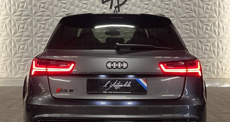 Première Main : Non Nb. Vitesse : 8 Garantie : 12 Mois GARANTIE BASIC MBP PLAFOND 1500€ L'Automobile Paris vous propose cette magnifique Audi RS6 génération C7 phase 2, moteur 4.0l de 560 chevaux, 8 cylindres en V couplé à sa boite de vitesse automatique S Tronic, le tous en quatre roues motrices. Couleur : Gris Daytona Intérieur : Cuir Valcona Blanc Points Forts : - Suivi Audi - Pack dynamique plus - Caméra 360° - Toit panoramique ouvrant - Sièges chauffants avant / arrière - Système son Bose OPTIONS ET EQUIPEMENTS : Extérieur et Châssis : - Jantes 21 - Pack dynamique plus - Peinture effet nacré - Phares Matrice Led - Pot d'échappement sport - Rétroviseur extérieur à réglages électriques, dégivrant et rabattable, avec memory - Toit panoramique ouvrant - Vitrage arrière surteinté, verre isolant, verre thermo-isolant Intérieur et sécurité : - Airbag coté passager désactivable - Airbag latéral arrière - Audi connect (services liés à internet) - Cache compartiment moteur carbone-sigma - Caméra 360° - Emetteur pour commande d'ouverture porte de garage - Kit fixation pour système de glissières compartiment à bagages - Pack design carbone - Pré-équipement services tracking / système de localisation - Réception radio digital - Siège chauffant avant et arrière - Sound-system Bose - Supports isofix pour siège enfant sur siège passager - Système d'assistance de conduite : assistant visibilité de nuit (Night Vision) - Système d'assistance de conduite : Audi Pre Sense (régulateur de distance avec stop and go) - Trappe de chargement avec sac à ski GARANTIE 12 MOIS (Extensible 24 mois) Véhicule disponible et visible sur rendez-vous du Mardi au Samedi de 10h à 12h et de 14h30 à 19h. Erwan - SERVICES DISPONIBLES : -Financement - Garantie supplémentaire - Livraison dans toute la France - Detailing - traitement céramique - Film de protection transparent Xpel - L'AUTOMOBILE PARIS SPECIALISTE DU COMMERCE DE VEHICULE DE SPORT, PRESTIGE ET COLLECTION 35 Chemin des boeufs ZA les Bosquets 95540 MERY-SUR-OISE