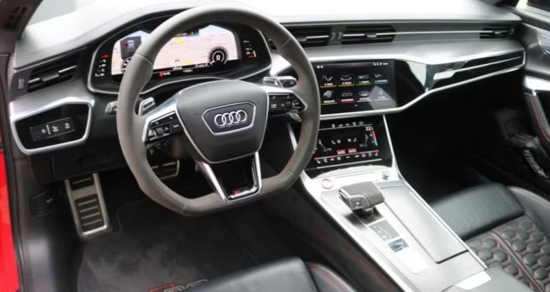 Première Main : Oui Nb. Vitesse : 8 Garantie : 12 Mois MBP Audi RS6 Avant 4.0 TFSI quattro Tiptronic en rouge Tango métallisé avec sièges sport RS en cuir Valcona noir intégral avec surpiqûres en nid d'abeille rouge Express et avec les équipements spéciaux supplémentaires suivants : Barre de remorquage pivotante électrique Prise en charge LTE GB1 pour le boîtier téléphonique Audi Servomoteur GZ2 pour la fermeture des portes Affichage tête haute KS1 Pack dynamique PA3 RS plus - Système de freinage en céramique RS - Augmentation de la vitesse maximale à 305 km/h - Direction dynamique intégrale - quattro avec différentiel sport Programme d'assistance PCM Ville - Assistant d'intersection - Avertissement de changement de voie - Avertissement de sortie - Assistance en cas de circulation transversale arrière - Audi pre sense avant - Audi pre sense arrière - Audi pre sense 360° Caméras environnementales PCZ Système de freinage en céramique PC9 RS avec étriers de frein rouges Ensemble de conception PEF RS rouge Commandes en Alcantara noir avec surpiqûres contrastantes rouge Express - Soufflet de sélecteur de vitesse en cuir nappa fin, noir avec surpiqûres contrastantes rouge Express - Tableau de bord et seuils de portes en cuir nappa noir fin - Accoudoirs de portières en cuir Nappa noir fin avec surpiqûres contrastantes rouge Express Côtés de la console centrale en Alcantara noir avec surpiqûres contrastantes rouge Express - Ceintures de sécurité noires avec bordure rouge - Tapis de sol noirs avec surpiqûres contrastantes rouge Express et inscription RS à l'avant Sièges sport PEH RS à l'avant, en cuir Valcona perforé avec surpiqûres en nid d'abeille, incluant la ventilation des sièges - Partie centrale des sièges avant et deux sièges arrière extérieurs en cuir Valcona noir perforé avec surpiqûres en nid d'abeille et embossage RS - Renforts latéraux des sièges, siège central arrière, appuie-tête et accoudoir central avant en cuir Valcona noir - Coutures contrastantes en option, coloris Rouge Express - Ventilation des sièges avant Clé confort PGB avec déverrouillage du coffre par capteur, avec système d'alarme antivol Safelock. Phares PXF HD Matrix LED avec éclairage laser Audi, feux arrière à LED et système de nettoyage des phares Vitrage de confidentialité QL5 (verre teinté) Reconnaissance des panneaux de signalisation routière par caméra QR9 Interface musicale Audi UF8 à l'arrière Ouvre-porte de garage VC2 Système d'échappement sport 0P6 RS Suspension sport 2MC RS avec contrôle dynamique de la conduite (DRC) Toit panoramique en verre 3FU Système de rails 3GN avec kit de fixation 4A4 Sièges chauffants avant et arrière Pack arrière Audi Pre Sense 4x9 Anneaux et lettrage Audi 4ZP en noir brillant Jantes en aluminium coulé 53H, design trapézoïdal à 5 ??rayons en V, finition anthracite brillante. Rétroviseurs extérieurs 6XL à réglage électrique, chauffants et rabattables, à atténuation automatique des deux côtés et avec fonction mémoire Système audio haut de gamme Bang & Olufsen 9VS avec son 3D Boîtier téléphonique Audi 9ZE Ce véhicule d'occasion est en excellent état, sans accident et très bien entretenu.