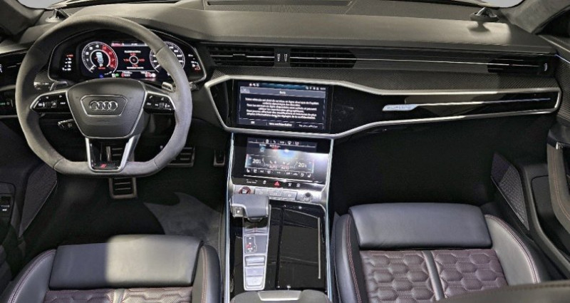 Cylindrée : 3996 cm3 Nb. Vitesse : 8 - Pack Esthétique carbone noir mat *** Avec : Rampes de pavillon noir mat *** Avec : Insert de diffuseur AR en carbone mat *** Avec : Baguettes décoratives sur les vitres latérales en noir mat *** Avec : Inserts de bas de caisse carbone mat *** Avec : Ailettes latérales AV carbone mat *** Avec : Becquet AV en carbone mat - Pack Design RS Plus rouge *** Avec : Ceintures de sécurité noires avec bordure rouge *** Avec : Tapis complémentaires noirs avec inscription RS et surpiqûres contrastées rouges *** Avec : Tableau de bord et rebords de portieres en cuir Nappa fin Noir *** Avec : Accoudoirs de portières en Dinamica avec surpiqûres contrastées rouges *** Avec : Soufflet de sélecteur de vitesses en cuir Nappa fin noir avec surpiqûres contrastées rouges *** Avec : Monogramme RS brodé en rouge sur sièges AV *** Avec : Commandes en Dinamica noir avec surpiqûres contrastées rouges *** Avec : Partie latérale de la console centrale en Dinamica noir avec surpiqûres contrastées rouges - Pack Assistance Route *** Avec : Assistant de freinage d'urgence *** Avec : Assistant de changement de direction *** Avec : Assistant d'évitement d'urgence *** Avec : Assistant de feux de route *** Avec : Assistant de maintien de la vitesse adaptatif *** Avec : Assistant d'efficacité *** Avec : Assistant de stabilité de trajectoire *** Avec : Assistant de conduite adaptatif - Pack Assistance pour la ville *** Avec : Avertisseur de sortie du véhicule *** Avec : Avertisseur de changement de file *** Avec : Alerte de trafic transversal AR *** Avec : Audi Pre Sense Rear *** Avec : Assistant de croisement - Audi Pre sense pack AR - Airbags latéraux arrière - Système d?airbags de tête - Prétensionneurs de ceinture arrière réversibles (permet un resserrement préventif des ceintures de sécurité en cas de danger *** Avec : Airbags latéraux AR *** Avec : Système d'airbags de tête *** Avec : Prétensionneurs de ceinture réversibles pour les sièges AR *** Avec : Boucles de ceintures de sécurité éclairées - Pack Air Quality *** Avec : Ioniseur d'air *** Avec : Aromatisation - Pack Esthétique Noir Plus *** Avec : Anneaux Audi à l?AV et à l?AR ainsi qu?inscription sur l?Audi Singleframe et sur le capot de coffre en noir brillant - Pack Fumeur *** Avec : Allume-cigare *** Avec : Cendriers AV et AR éclairés - Bang & Olufsen Advanced Sound System avec son 3D - Assistant de vision nocturne - Ciel de pavillon en Dinamica noir Audi Exclusive - Sièges Sport RS AV en cuir Valcona perforé avec surpiqûres alvéolées + ventilation de l?assise - Système d'échappement Sport RS pour une sonorité plus sportive, à double flux, avec embouts ovales noir brillant - Affichage tête haute - Châssis Sport RS plus avec Dynamic Ride Control (DRC) réglable sur 3 niveaux: comfort, auto, dynamic - Boitiers de rétroviseurs extérieurs carbone mat - Application décoratives structure carbone - Fermeture assistée des portières (soft close) - Chauffage des sièges AV et AR - Jantes en aluminium coulé, style 5 branches en Y noir mat 10,5 J x 22 avec pneus 285/30 R 22 - Suppression de l'identification du modèle et de l'inscription de la puissance/technologie - Applications décoratives en Aluminium Racing Anthracite - Audi Virtual Cockpit - Climatisation automatique confort 4 zones - Jantes en Aluminium coulé, style 5 branches en Y gris mat 10,5 J x 22 avec pneus 285/30 R 22 - Moulures de seuils RS avec insert en aluminium AV/AR, éclairées - Navigation MMI plus avec MMI touch response - Pack Eclairage contour/ambiance multicolore *** Avec : Miroirs de courtoisie éclairés côté conducteur et passager AV *** Avec : Boîte à gants *** Avec : Eclairage à gauche et à droite dans le coffre *** Avec : Commande intérieure des portières AV/AR *** Avec : Eclairage dans la zone des pieds AV/AR *** Avec : Module de pavillon AV et AR incluant spots de lecture - commande capacitive *** Avec : Eclairage périphérique dans les poignées de portières extérieures AV/AR *** Avec : Eclairage des seuils de portières AV/AR avec projection Audi Sport *** Avec : Vide-poches sur la console centrale AV *** Avec : Eclairage périphérique dans le hayon - Pack Non fumeur *** Avec : 1 prise 12 volts à l?AV *** Avec : 1 prise 12 volts à l?AR - Pack Rangement *** Avec : 2 Porte-boissons dans l'accoudoir central a l´AR *** Avec : Filet de coffre à fixer aux oeilletons de fixation sur le plancher du coffre - Pack style Aluminium Mat *** Avec : Vitres latérales en style aluminium mat - Phares HD Matrix LED feux AR à LED, éclairage laser Audi, scénarios de lumière RS/clignotants dynamiques - Projection LED du logo RS performance au sol - Préparation pour crochet d'attelage - Rétroviseur intérieur jour/nuit automatique sans encadrement - Rétroviseurs extérieurs dégivrants ainsi que réglables et rabattables électriquement, jour/nuit automatiques des deux côtés avec fonction mémoire avec clignotants à LED intégrés et fonction rabat automatique pour le rétroviseur extérieur côté passager avant, incluant buses de lave-glace dégivrantes, miroir convexe, plan ou asphérique. La fonction rabat automatique permet de basculer le rétroviseur côté passager avant vers le bas au passage de la marche arrière pour apporter au conducteur une meilleure vision du trottoir - Sellerie Microfibre Dinamica/cuir combiné avec logo RS dans le dossier sièges AV - Toit panoramique en verre ouvrant en 2 parties - Touches de commande façon verre en noir avec réponse haptique y compris style aluminium étendu - Volant chauffant Sport contour en cuir style 3 branches avec multifonction plus et palettes de changement de vitesses + méplat - Accoudoir central confort AV avec inclinaison réglable et coulissant en longueur - Adaptative air suspension RS - Airbags latéraux à l'AV et à l'AR incluant système d'airbags de tête et boucles de ceinture éclairée - Alarme antivol -