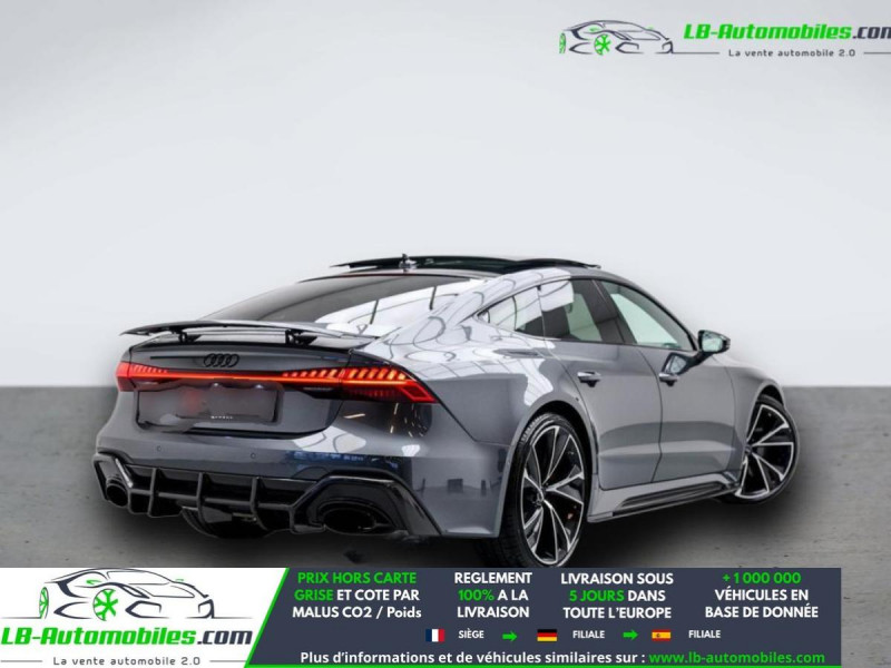 Référence : 1135885 Vos Avantages chez LB-AUTOMOBILES.com / Prix affiché TTC Livré hors carte grise / Livraison sous 10 jours dans toute la France hors 31 / Pas d?avance de frais paiement du véhicule 100% à la livraison par virement. Audi RS7 Sportback Neuf remisée, Audi RS7 Sportback Occasion Toulouse Beaupuy 31850, Audi RS7 Sportback Véhicule sorti de réseau collaborateur, Audi RS7 Sportback import, Audi RS7 Sportback importateur, Audi RS7 Sportback Livraison possible dans toute la France sous 5 jours, Audi RS7 Sportback, Audi RS7 Sportback Location Option Achat, Audi RS7 Sportback LLD, Audi RS7 Sportback Longue Durée, Audi RS7 Sportback TVA récupérable. Possibilité d'extension de garantie 12, 24,36 mois, Pour tout autres voitures import neufs ou occasions collaborateur fortement remisée, Mandataire Audi, Mandataire BMW, Mandataire Volkswagen, Mandataire Mercedes, Mandataire Peugeot Espagne, Mandataire Renault Espagne, Porsche import, Mandataire Citroën Espagne, Mandataire Seat Espagne, n'hésitez pas à nous contacter. « Sous réserve de vente préalable et erreur de saisie » Principaux équipements : - 4x4 - ABS - Accoudoir - Affichage tête haute - Antidémarrage - Assistant d'angle mort - Assistant de vision nocturne - Avertisseur de franchissement de ligne - Bluetooth - Boîte de vitesses robotisée - Capteur de lumière - Capteur de pluie - Chargement par induction pour smartphones - Cockpit numérique - Contrôle de la pression des pneus - ESP - Fermeture centralisée - GPS - Grille de protection pour coffre - Hayon électrique - Kit mains libres - Ordinateur de bord - Phares laser - Radio DAB - Réglage électrique des sièges - Régulateur de vitesse adaptatif - Rétroviseur extérieur électrique - Rétroviseur intérieur anti-éblouissement automatique - Sièges arrières chauffants électriques - Sièges chauffants - Sièges sport - Support lombaire - Suspension sport - Système antipatinage - Système d'alarme - Système de reconnaissance des panneaux de signalisation - Toit ouvrant - Toit panoramique - Tuner/radio - Ventilation du siège - Verrouillage centralisé sans clé - Volant multifonction