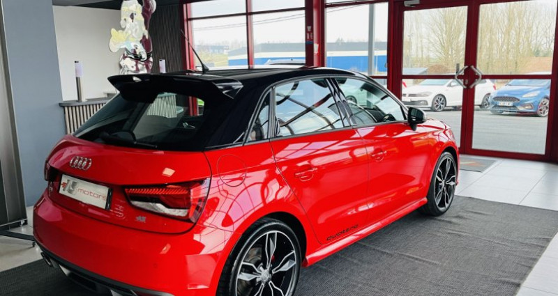AUDI S1 SPORTBACK 2,0 TFSI 231 QUATTRO, ROUGE DANS UN EXCELLENT ETAT VEHICULE FRANCAIS PAS DE MALUS VEHICULE SOIGNÉ ET NON FUMEUR GARANTIE DANS TOUS LES RESEAUX AUDI FRANCE OU EUROPE CARNET D'ENTRETIEN A JOUR REVISION OK DOUBLE DE CLÉ AUCUN FRAIS A PREVOIR EQUIPEMENTS - Sono Hi-Fi Système Bluetooth Commandes audio au volant Ordinateur de bord Système de navigation Feux de jour Aide au démarrage en côte Suspensions sport Sièges avant sport Essuie-glace automatique Pack électrique Driving mode selection Rétroviseurs électriques dégivrants Sièges électriques à mémoire Vitres arrières teintées Vitres teintées Volant sport Becquet Kit carrosserie Allumage auto des feux Accoudoir central Détecteur de pluie Démarrage sans clé Volant cuir Jantes alliage Aide au stationnement Radar de recul Phares au Xénon Régulateur de vitesse Sièges chauffants Vitres électriques Direction assistée Climatisation automatique Vérouillage centralisé à distance Airbags genoux Airbags rideaux Fixation Isofix Vérouillage centralisé Feux anti-brouillard Anti-démarrage Airbags latéraux Airbag passager Airbag conducteur 4x4 Anti-patinage ESP ABS