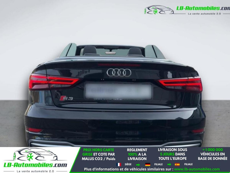Référence : 1189947 Vos Avantages chez LB-AUTOMOBILES.com / Prix affiché TTC Livré hors carte grise / Livraison sous 10 jours dans toute la France hors 31 / Pas d?avance de frais paiement du véhicule 100% à la livraison par virement. Audi S3 Cabriolet Neuf remisée, Audi S3 Cabriolet Occasion Toulouse Beaupuy 31850, Audi S3 Cabriolet Véhicule sorti de réseau collaborateur, Audi S3 Cabriolet import, Audi S3 Cabriolet importateur, Audi S3 Cabriolet Livraison possible dans toute la France sous 5 jours, Audi S3 Cabriolet, Audi S3 Cabriolet Location Option Achat, Audi S3 Cabriolet LLD, Audi S3 Cabriolet Longue Durée, Audi S3 Cabriolet TVA récupérable. Possibilité d'extension de garantie 12, 24,36 mois, Pour tout autres voitures import neufs ou occasions collaborateur fortement remisée, Mandataire Audi, Mandataire BMW, Mandataire Volkswagen, Mandataire Mercedes, Mandataire Peugeot Espagne, Mandataire Renault Espagne, Porsche import, Mandataire Citroën Espagne, Mandataire Seat Espagne, n'hésitez pas à nous contacter. « Sous réserve de vente préalable et erreur de saisie » Principaux équipements : - 4x4 - ABS - Accoudoir - Antidémarrage - Attache remorque détachable - Bluetooth - Capteur de lumière - Capteur de pluie - Carnet d'entretien - Chargement par induction pour smartphones - Cockpit numérique - Contrôle de la pression des pneus - Direction assistée - Éclairage adaptatif - Écran tactile - ESP - Fermeture centralisée - Feux de jour - Garantie - GPS - Isofix - Jantes alliage - Kit de réparation d'urgence des pneus - Kit mains libres - Ordinateur de bord - Pack sport - Phares LED - Pneus été - Point Isofix siège passager - Port USB - Radio DAB - Régulateur de vitesse - Rétroviseur extérieur électrique - Rétroviseur intérieur anti-éblouissement automatique - Sièges chauffants - Sièges sport - Support lombaire - Suspension sport - Système antipatinage - Système de détection de la fatigue - Système de limitation de la vitesse - Système de nettoyage des phares - Système de sonorisation - Système Stop & Start - Véhicule non-fumeur - Verrouillage centralisé sans clé - Vitres électriques - Volant en cuir - Volant multifonction