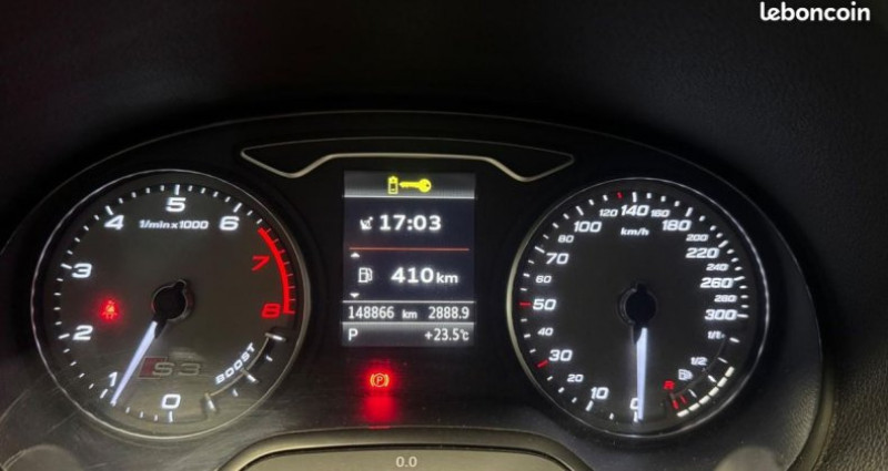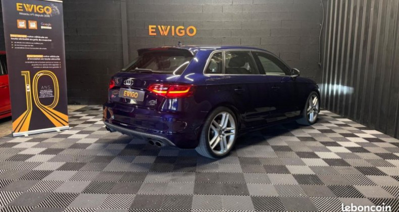 Audi S3 SPORTBACK 2.0 TFSI 300 PACK QUATTRO S-TRONIC BVA berline, bleu, 19 cv, 5 portes, première mise en circulation le 18/10/2013, garantie 6 mois. - NOS SERVICES ET PRESTATIONS COMPLÉMENTAIRES - - Visite virtuelle : avant de vous déplacer, visualisez votre futur véhicule sous toutes ses coutures . Contactez-nous pour en voir plus ! - Extension de garantie jusqu'à 60 mois. - Solutions de Financement de 12 à 84 mois. - Livraison dans toute la France métropolitaine (sur devis). - Reprise possible de votre ancien véhicule. - Les informations délivrées par cette annonce sont non contractuelles et données à titre indicatif. Packs disponibles (véhicules éligibles au Label) - Pack Clés en Main - 691 € TTC(¹)(²) Démarches (hors carte grise) | 1/4 de carburant | Nettoyage First | Garantie 6 mois | Label inclus? - Pack Sérénité - 891 € TTC(¹)(²) Démarches (hors carte grise) | 1/2 de carburant | Nettoyage Confort | Garantie 12 mois | Label inclus? - Pack Prestige - 1.091 € TTC(¹)(²) Démarches (hors carte grise) | Plein complet | Nettoyage Prestige | Garantie 12 mois | Label inclus? + Surprise du chef - (¹) Les véhicules non éligibles au Label bénéficient de tarifs préférentiels. Veuillez contacter votre conseiller pour obtenir les conditions tarifaires applicables. (²) Tarif pour les véhicules deux roues motrices dont la valeur de vente est inférieure à 60 000 € TTC. - Véhicule visible sur rendez vous 5 places OPTIONS ET ÉQUIPEMENTS : Audio - Télécommunications : - Système Audio Bang & Olufsen - Bluetooth - GPS - commandes vocales Conduite : - Boîte de vitesse séquentielle - Choix du mode de conduite - Essuies glaces automatiques - Frein de parking électrique - Stop & Start - allumage automatique des feux - détecteur de pluie - limiteur de vitesse - palettes au volant Extérieur : - Phares AR à led - Phares AV de jour à LED - jantes : aluminium - système d'aide au stationnement Intérieur : - Accoudoir central AV - Accoudoir central AV +AR - Miroir de courtoisie chauffeur éclairé - Miroir de courtoisie passager éclairé - Pédalier sport - Volant alu/cuir - Porte gobelet avant - accoudoir central - accoudoir central arrière - banquette 1/3 - 2/3 - climatisation : automatique - climatisation multi zone - fermeture centralisée - non fumeur - ordinateur de bord - sièges chauffants - vitres électriques - volant réglable hauteur - volant réglable profondeur - volant sport Pack : - Boîte de vitesse automatique - Mode confort - Mode sport - 4 roues motrices - GPS couleur - nombre de rapports : 6 vitesses - volant multifonctions - volant réglable Sellerie : - Intérieur cuir alcantara Sécurité : - Airbags - ABS - Aide au demarrage en pente - ESP - airbags latéraux - fixations ISOFIX - phares antibrouillard - roue de secours Autres équipements et informations : - Double des clés - Factures d'entretien - Mode normal - Phares AV de jour - Classe Crit'air : 1 - Puissance kilowatt : 221 kw - puissance réelle : 300 ch - émission CO2 : 159 g/km - état : bon Référence annonce : d149131