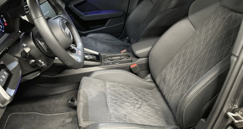 Cylindrée : 1984 cm3 Nb. Vitesse : 7 - Pack Esthétique Noir Plus *** Avec : Pack Esthétique Noir *** Avec : Anneaux en noir - Pack Eclairage d'ambiance multicolore Le pack d'éclairage d'ambiance plus comprend l'éclairage intérieur de série en blanc: - Module de toit à LED, à l'AV et à l'AR, y compris les liseuses - Miroirs de courtoisie pour le conducteur et le passager AV, éclairés - Éclairage de la boîte à gants - Éclairage du compartiment à bagages *** Avec : Compartiment de rangement dans la console centrale *** Avec : Eclairage des seuils de portières AR *** Avec : Pack Eclairage d'ambiance *** Avec : Choix parmi 30 couleurs *** Avec : Eclairage d'ambiance des portières AV/AR (multicolore) *** Avec : Eclairage de contour des portières AV/AR multicolore *** Avec : Eclairage du contour du tableau de bord multicolore - Jantes en alliage léger Audi Sport 19'', structure 5 bras jumeaux creusés, Gris Titane mat, tournées brillant 8,0J x 19, pneus 235/35 R19 - Suspension avec amortisseurs pilotés - Clé confort incluant déverrouillage du coffre par capteur (sans safelock) - Accès et démarrage du véhicule mains libres (keyless access) - Déverrouillage du hayon via la touche coffre de la télécommande ou en simulant un mouvement de pied dans la zone AR du véhicule (ouverture et fermeture). - Vitrage Privacy : lunette AR, vitres de portières AR et vitres latérales AR surteintées - Etriers de frein laqués rouges - Banquette AR variable, 40:20:40, avec porte-gobelet dans l?accoudoir de la place centrale - Audi smartphone interface - Accoudoir de portière en similicuir - Applications décoratives en aluminium Spectre foncé - Audi Connect Navigation et Divertissement Plus - Audi virtual cockpit - Boîtier de rétroviseurs en style aluminium - Climatisation automatique confort 2 zones - Jantes en alliage léger 18'', 5 branches doubles en V (style S), Gris Graphite 8,0J x 18, pneus 225/40 R18 - Navigation MMI plus avec MMI touch - Pack Aluminium Intérieur - Pack Rangement *** Avec : Boîte à gants verrouillable *** Avec : Filet d'arrimage pour bagages *** Avec : Prise 12V dans le coffre *** Avec : Filet de rangement au dos des sièges AV *** Avec : Prise 12V dans la console centrale AR *** Avec : Compartiment de rangement côté conducteur *** Avec : 2ème lumière LED à gauche du coffre à bagage - Phares AV Full LED - Rétroviseur intérieur jour/nuit automatique sans encadrement - Rétroviseurs extérieurs réglables, dégivrants, rabattables électriquement avec fonction rabat automatique - Seuils de portes avec inserts en aluminium éclairés à l'AV - Volant cuir Sport multifonctions Plus 3 branches avec méplat et palettes de commande au volant - Accoudoir central coulissant en longueur, avec inclinaison réglable - Adaptative Cruise Control - Airbags latéraux AV et système d'airbags de tête - Alerte de sortie de voie - Appel d'urgence Audi connect - Assistant de feux de route - Audi Connect Appel d'urgence - Audi Connect sécurité et assistance en ligne - Audi Drive Select - Audi Hold Assist - Audi Park Assist - Audi pre sense front - Audi Sound System - Caméra de recul - Ciel de pavillon en tissu Noir - Clé à fréquence radio (sans safelock) - Commande de désactivation de l'airbag passager AV - Contrôle de la pression des pneus - Direction progressive - Dispositif de limitation de vitesse - Dossier de banquette AR rabattable 40:60 - Détecteur de pluie et de luminosité - Ecrous de roues antivol - Extérieur Sport spécifique S3 - I-Size et Top Tether pour les sièges AR extérieurs - Interface Bluetooth - Kit réparation - Lave-phares haute pression - Miroirs de courtoisie - Outillage de bord - Pare-brise à vitrage acoustique - Rappel de ceinture de sécurité avec dispositif AR de détection d'occupation du siège - Réception radio numérique (DAB) - Récupération d'énergie - Sièges AV réglables manuellement: Hauteur et positionnement en longueur, Inclinaison de dossier, Hauteur des appuie-tête et des ceintures - Sièges AV Sport - Système Start & Stop avec récupération d'énergie au freinage - Sécurité enfants - Tapis de sol AV/AR - Trousse de secours, triangle de présignalisation et 2 vestes de sécurité