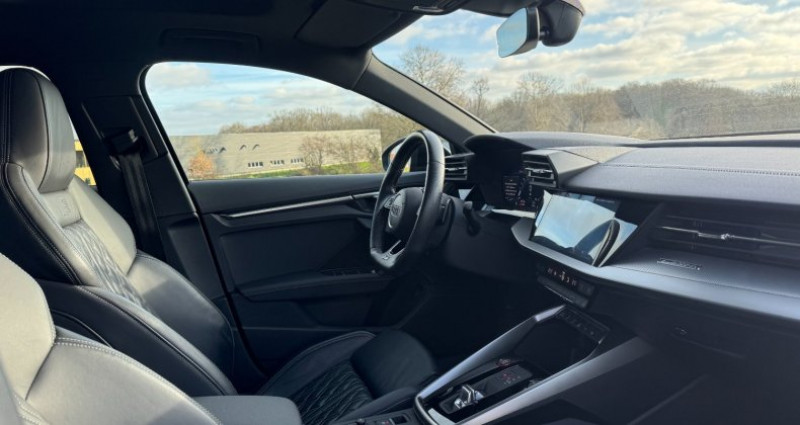 Audi S3 Sportback NF 310 ch S Tronic 7 Quattro - 2020 Première main, cette Audi S3 de 2020 a été livrée par la concession Audi Auto Concept de Rouen, où elle a également bénéficié d’un entretien intégralement réalisé, garantissant une traçabilité exemplaire. Animée par le 2.0 TFSI délivrant 310 ch, associée à la transmission quattro et à la boîte S tronic 7, la S3 offre des performances franches et maîtrisées, sans jamais renoncer au confort ni à la polyvalence. L’équilibre du châssis, la motricité permanente et la précision de l’ensemble traduisent un savoir-faire technique bien connu. Configuration très complète puisque ce modèle propose l'affichage tête haute, le cuir Nappa, suspension pilotée, toit ouvrant, sièges chauffants, accès confort ou encore le hayon électrique. Sont à noter, un défaut présent sur le Pare choc AV et Pare Choc Arrière, ceux ci pourront faire l'objet d'une réparation ou laisseront place à une négociation proportionnelle. Une sportive discrète, efficace et rigoureusement suivie, fidèle à l’exigence de sélection Alfred Conciergerie Automobile. Véhicule visible sur notre site, portfolio photo disponible sur simple demande. Caractéristiques Année : 2020 Kilométrage : 73810 kms Teinte: Noir Mythic Métal. Finition : S3 Sportback NF Transmission : S Tronic 7 - Quattro Moteur : 4 cyl. 2,0 310 ch Intérieur : Cuir Nappa Noir / Gris Roche Garantie : Sur formule 6 à 24 mois Options principales : • Sièges avant chauffants • Hayon à ouverture et fermeture électriques • Pare brise à vitrage athermique • Clé confort sans safelock • Pack esthétique noir • Boitiers rétroviseurs ext couleur carrosserie • Appui lombaire à 4 axes pour sièges avant • Audi virtual cockpit plus 12,3 • Suspension avec amortisseurs pilotes • phares Matrix LED + cligno dynamiques • Vitres arrières surteintées • Lecture panneaux par caméra • Suppressio identification • Toit ouvrant panoramique • Réglage électriques sièges avant • Audi phone box • Affichage tête haute ? Cuir Nappa fin avec estampage S ? Jantes 19 alliage audi sport 5 bras en Y ? Audi smartphone interface