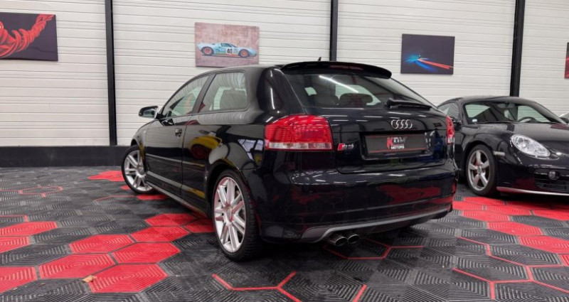 ======= OPTIONS ======= 3ème feu stop arrière 3ème pare-soleil au dessus du rétroviseur ABS (Antiblocage de roues) Accoudoir central avant avec vide-poches Aide au stationnement arrière Airbags de tête AV et AR Sideguard Airbags grand volume pour le conducteur et le passager Airbags latéraux avant intégrés aux dossiers de sièges Alarme antivol incluant protection volumétrique et protection antiremorquage Antipatinage ASR : empêche le patinage des roues motrices ; assure une motricité optimale Applications décoratives en aluminium brossé mat sur contre-portes et console centrale Appuie-tête avant et arrière Audi Backguard, en cas de collision arrière, la conception du siège permet l'amortissement du haut du corps et le soutien plus précoce de la tête Avertisseur ''2 tons'' Baguettes de protection latérales couleur carrosserie Banquette arrière rabattable 1 3-2 3 BAS : amplificateur électronique de freinage d'urgence Becquet de pavillon dans la couleur de la carrosserie Boîte à gants grand volume côté passager avant, éclairée Cache-bagages Calandre Style S à baguettes verticales doubles style chromé Capteur de pluie Carrosserie galvanisée Catadioptres de portière passifs à l'avant et à l'arrière Ceintures 3 points à enrouleur à toutes les places avec prétensionneurs pyrotechniques, limiteurs de tension et réglage en hauteur à l AV, détecteur de port de ceintures à l AR, sécurité enfants sur le verrouillage des ceintures à Châssis Sport spécifique S : suspension réglée pour un contact plus direct avec la route et un comportement sportif Ciel de pavillon en tissu noir ou gris lumière Climatisation automatique Confort avec réglage asservi à la position du soleil Colonne de direction de sécurité Commande des feux pour feux de stationnement, feux de route, projecteurs antibrouillards et feu arrière de brouillard Console centrale avec commandes du chauffage et vide-poches Contre-portes avec partie centrale en Alcantara et accoudoir intégré Crochets pour sacs à gauche et à droite dans le coffre Détecteur d'occupation des sièges avant Détecteur de luminosité et de pluie + fonction Coming Home Leaving Home Déverrouillage du coffre par touche assistée électriquement, commande supplémentaire pour déverrouiller le coffre depuis la place conducteur Diffuseurs d'air en Aluminium Direction assistée Servotronic EBV : Répartiteur électronique de freinage Eclairage blanc, réglable, sur les instruments ; éclairage rouge sur les commandes et le tableau de la climatisation Eclairage dans le coffre Eclairage intérieur à temporisation avec contacteurs sur toutes les portières Ecrous antivol EDS (blocage électronique de différentiel) Encadrement décoratif sur la calandre avec anneaux Audi Anodisés au centre Essuie-glace arrière avec commande de lavage-balayage automatique Essuie-glace deux vitesses avec commande automatique Etriers de freins AV laqués noir avec emblème S3 Feux arrière rouges, feu de recul blanc, avec feu arrière de brouillard idSAT : système d'immobilisation et de localisation par satellite Indicateur de température extérieure Inscription S3 sur la calandre, les baguettes latérales de portières AR, le capot de coffre, le volant sport , le compte-tours et les selleries Instrumentation à éclairage réglable Instrumentation style S Jantes en aluminium coulé 7 branches doubles style S, 7.5J x 18 Lunette arrière dégivrante avec minuterie et antenne de vitre intégrée Miroir de courtoisie conducteur Miroir de courtoisie passager Oeilletons de fixation dans le coffre Outillage de bord dans le coffre Pack Eclairage Pare-chocs AR spécifiques avec diffuseur d'air de couleur platine Pare-chocs avant spécifique avec entrée d'air en nids-d'abeilles et diffuseur d'air de couleur platine Pare-chocs dans la couleur de la carrosserie Pare-soleil pour la lunette arrière Pare-soleil rabattables et pivotants, côtés conducteur et passager avant, avec miroir de courtoisie occultable Patères à vêtement : deux patères sur le pavillon à l'arrière et deux sur les montants de pavillon centraux Pédales en aluminium Poignée de frein à main en cuir et pommeau de levier de vitesse en cuir avec inscription S3 Poignées de maintien, avec mécanisme amortisseur, rabattables, encastrées dans le pavillon Poignées de portières affleurantes dans la couleur de carrosserie Porte-boissons avant avec jalousie, double, sur le tunnel central Prise de courant Programme de stabilité électronique (ESP) Projecteurs antibrouillard Projecteurs au Xénon, lave phares et réglage de site des phares automatique Protection anticollision latérale dans les portières, constituée de profilés d'aluminium rigides Protection antidémarrage électronique Protection durable sous le plancher et dans les passages de roue Radio Concert avec lecteur CD en façade et compatibilité MP3, mémoire pour 12 stations, réception FM et AM (MO), clavier à touches douces et écran trois lignes, réglage de volume asservi à la vitesse, phares diversifiées, 8 HP actifs et Régulateur de vitesse Repose-pied à côté de la pédale d'embrayage Réservoir de carburant dans une zone protégée ; volume 100 litres Rétroviseurs électriques Rétroviseurs extérieurs asphérique à gauche et convexe à droite Rétroviseurs extérieurs style aluminium Roue de secours temporaire Seuils de portes avec inserts d'aluminium Sièges avant réglables en hauteur manuellement Sièges sport Alcantara cuir Signal sonore pour oubli d'extinction des feux Soft Touch : Assistance électrique permettant un déverrouillage sans effort du capot de coffre Sorties d'échappement doubles, ovales, style chromé Système d'information conducteur SIC Système de ventilation : 4 diffuseurs ronds sur le tableau de bord Tableau de bord capitonné Tapis complémentaires à l'arrière Tapis complémentaires en velours à l'avant, assortis à la couleur de la moquette Témoins de contr
