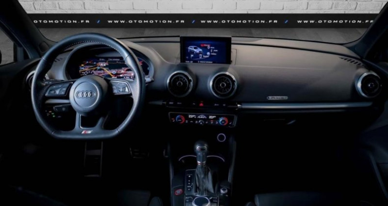 ======= OPTIONS ======= Audi Magnetic Ride: Système d'amortisseurs adaptifs Advanced key Appuis lombaires à 4 axes avec réglage électrique pour les sièges conducteur et passager AV réglage horizontal et vertical Audi Parking System Plus: Signal sonore et visuel d'aide au stationnement AV et AR Banquette AR divisée en 3 parties 40 20 40 avec accoudoir central Etriers de freins laqués rouge avec inscription S à l'AV Extension de garantie 1 an supplémentaire (2 + 1) ou 90000 km Jantes en aluminium coulé Audi Sport en style aile à 5 bras, style titane brillant 8Jx19 avec pneus 235 35 R19 Peinture nacrée Phares Audi Matrix LED avec clignotants dynamiques (AV et AR) Sellerie en Cuir Nappa fin avec embossage S sur le siège AV Sièges AV chauffants Sièges AV Sport S avec appuie-tête intégrés Tapis réversible pour coffre (velours et gomme) Vitres AR surteintées (Privacy glass) : lunette et vitres latérales AR surteintées ======= EQUIPEMENTS DE SERIE ======= Applications décoratives sur les contre-portes et tableau de bord Aluminium brossé mat Nb. Vitesses : 7 Conso Mixte : l/100
