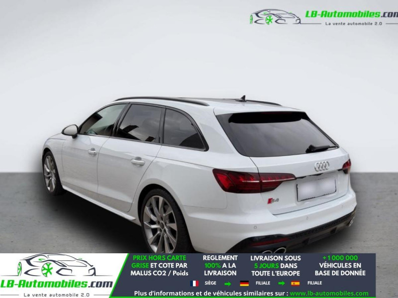 Référence : 1135526 Vos Avantages chez LB-AUTOMOBILES.com / Prix affiché TTC Livré hors carte grise / Livraison sous 10 jours dans toute la France hors 31 / Pas d?avance de frais paiement du véhicule 100% à la livraison par virement. Audi S4 Avant Neuf remisée, Audi S4 Avant Occasion Toulouse Beaupuy 31850, Audi S4 Avant Véhicule sorti de réseau collaborateur, Audi S4 Avant import, Audi S4 Avant importateur, Audi S4 Avant Livraison possible dans toute la France sous 5 jours, Audi S4 Avant, Audi S4 Avant Location Option Achat, Audi S4 Avant LLD, Audi S4 Avant Longue Durée, Audi S4 Avant TVA récupérable. Possibilité d'extension de garantie 12, 24,36 mois, Pour tout autres voitures import neufs ou occasions collaborateur fortement remisée, Mandataire Audi, Mandataire BMW, Mandataire Volkswagen, Mandataire Mercedes, Mandataire Peugeot Espagne, Mandataire Renault Espagne, Porsche import, Mandataire Citroën Espagne, Mandataire Seat Espagne, n'hésitez pas à nous contacter. « Sous réserve de vente préalable et erreur de saisie » Principaux équipements : - 4x4 - ABS - Accoudoir - Android Auto - Antidémarrage - Apple CarPlay - Assistance au freinage d'urgence - Assistance de démarrage en côte - Assistant d'angle mort - Assistant de sortie de stationnement - Assistant feux de route - Attache remorque pivotante - Avertisseur de franchissement de ligne - Bluetooth - Boîte de vitesses robotisée - Capteur de lumière - Capteur de pluie - Carnet d'entretien - Chargeur CD - Commande vocale - Contrôle de la pression des pneus - Diesel avec filtre à particules - Direction assistée - Éclairage adaptatif de virage - Éclairage d'ambiance - Écran tactile - ESP - Fermeture centralisée - Feux de jour LED - Galerie de toit - GPS - Grille de protection pour coffre - Hayon électrique - Isofix - Jantes alliage - Kit de réparation d'urgence des pneus - Kit mains libres - Lecteur CD - Ordinateur de bord - Package hiver - Pack sport - Phare antibrouillard - Phares LED - Pneus été - Port USB - Radio DAB - Réglage électrique des sièges - Régulateur de vitesse adaptatif - Rétroviseur extérieur électrique - Rétroviseur intérieur anti-éblouissement automatique - Rétroviseurs extérieurs rabattables électriquement - Sièges chauffants - Sièges sport - Support lombaire - Suspension sport - Système antipatinage - Système d'alarme - Système d'appel d'urgence - Système d'avertissement de la distance - Système de détection de la fatigue - Système de limitation de la vitesse - Système de nettoyage des phares - Système de reconnaissance des panneaux de signalisation - Système de sonorisation - Système Stop & Start - Toit ouvrant - Toit panoramique - Tuner/radio - Véhicule non-fumeur - Verrouillage centralisé sans clé - Vitres électriques - Vitres teintées - Volant en cuir - Volant multifonction