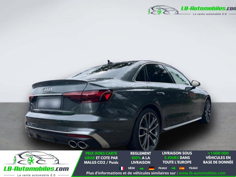 Référence : 1209882 Vos Avantages chez LB-AUTOMOBILES.com / Prix affiché TTC Livré hors carte grise / Livraison sous 10 jours dans toute la France hors 31 / Pas d?avance de frais paiement du véhicule 100% à la livraison par virement. Audi S4 Neuf remisée, Audi S4 Occasion Toulouse Beaupuy 31850, Audi S4 Véhicule sorti de réseau collaborateur, Audi S4 import, Audi S4 importateur, Audi S4 Livraison possible dans toute la France sous 5 jours, Audi S4, Audi S4 Location Option Achat, Audi S4 LLD, Audi S4 Longue Durée, Audi S4 TVA récupérable. Possibilité d'extension de garantie 12, 24,36 mois, Pour tout autres voitures import neufs ou occasions collaborateur fortement remisée, Mandataire Audi, Mandataire BMW, Mandataire Volkswagen, Mandataire Mercedes, Mandataire Peugeot Espagne, Mandataire Renault Espagne, Porsche import, Mandataire Citroën Espagne, Mandataire Seat Espagne, n'hésitez pas à nous contacter. « Sous réserve de vente préalable et erreur de saisie » Principaux équipements : - 4x4 - ABS - Accoudoir - Android Auto - Antidémarrage - Assistance au freinage d'urgence - Assistant d'angle mort - Bluetooth - Boîte de vitesses robotisée - Capteur de lumière - Capteur de pluie - Carnet d'entretien - Chargement par induction pour smartphones - Commande vocale - Contrôle de la pression des pneus - Diesel avec filtre à particules - Direction assistée - Éclairage adaptatif - Éclairage route non éblouissant - Écran tactile - ESP - Fermeture centralisée - Feux de jour LED - GPS - Isofix - Jantes alliage - Kit de préparation pour système de navigation - Kit mains libres - Lecteur CD - Ordinateur de bord - Pack sport - Phare antibrouillard - Phares au xénon - Pneus hiver - Port USB - Radio DAB - Réglage électrique des sièges - Régulateur de vitesse - Rétroviseur extérieur électrique - Rétroviseur intérieur anti-éblouissement automatique - Sièges chauffants - Sièges sport - Streaming musical intégré - Suspension adaptative - Suspension sport - Système antipatinage - Système d'alarme - Système d'appel d'urgence - Système de nettoyage des phares - Système de reconnaissance des panneaux de signalisation - Système de sonorisation - Système Stop & Start - Trappe à skis - Tuner/radio - Véhicule non-fumeur - Verrouillage centralisé sans clé - Vitre chauffante - Vitres électriques - Vitres teintées - Volant en cuir - Volant multifonction