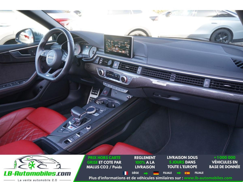 Référence : 1190145 Vos Avantages chez LB-AUTOMOBILES.com / Prix affiché TTC Livré hors carte grise / Livraison sous 10 jours dans toute la France hors 31 / Pas d?avance de frais paiement du véhicule 100% à la livraison par virement. Audi S5 Cabriolet Neuf remisée, Audi S5 Cabriolet Occasion Toulouse Beaupuy 31850, Audi S5 Cabriolet Véhicule sorti de réseau collaborateur, Audi S5 Cabriolet import, Audi S5 Cabriolet importateur, Audi S5 Cabriolet Livraison possible dans toute la France sous 5 jours, Audi S5 Cabriolet, Audi S5 Cabriolet Location Option Achat, Audi S5 Cabriolet LLD, Audi S5 Cabriolet Longue Durée, Audi S5 Cabriolet TVA récupérable. Possibilité d'extension de garantie 12, 24,36 mois, Pour tout autres voitures import neufs ou occasions collaborateur fortement remisée, Mandataire Audi, Mandataire BMW, Mandataire Volkswagen, Mandataire Mercedes, Mandataire Peugeot Espagne, Mandataire Renault Espagne, Porsche import, Mandataire Citroën Espagne, Mandataire Seat Espagne, n'hésitez pas à nous contacter. « Sous réserve de vente préalable et erreur de saisie » Principaux équipements : - 4x4 - ABS - Accoudoir - Antidémarrage - Assistance au freinage d'urgence - Assistant feux de route - Bluetooth - Boîte de vitesses robotisée - Capteur de lumière - Capteur de pluie - Contrôle de la pression des pneus - Direction assistée - Éclairage d'ambiance - Écran tactile - ESP - Fermeture centralisée - Feux de jour LED - GPS - Hayon électrique - Isofix - Jantes alliage - Kit de réparation d'urgence des pneus - Kit mains libres - Ordinateur de bord - Pack sport - Phares LED - Pneus été - Port USB - Réglage électrique des sièges - Régulateur de vitesse - Rétroviseur extérieur électrique - Rétroviseur intérieur anti-éblouissement automatique - Rétroviseurs extérieurs rabattables électriquement - Sièges chauffants - Sièges massants - Sièges sport - Support lombaire - Suspension sport - Système antipatinage - Système d'appel d'urgence - Système d'avertissement de la distance - Système de limitation de la vitesse - Système de nettoyage des phares - Système de sonorisation - Système Stop & Start - Tuner/radio - Véhicule non-fumeur - Vitres électriques - Volant en cuir - Volant multifonction
