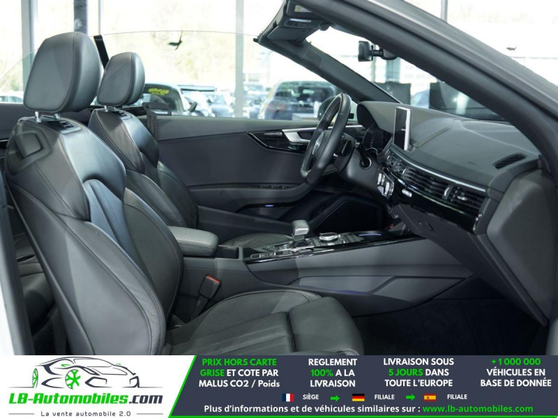 Référence : 1209887 Vos Avantages chez LB-AUTOMOBILES.com / Prix affiché TTC Livré hors carte grise / Livraison sous 10 jours dans toute la France hors 31 / Pas d?avance de frais paiement du véhicule 100% à la livraison par virement. Audi S5 Cabriolet Neuf remisée, Audi S5 Cabriolet Occasion Toulouse Beaupuy 31850, Audi S5 Cabriolet Véhicule sorti de réseau collaborateur, Audi S5 Cabriolet import, Audi S5 Cabriolet importateur, Audi S5 Cabriolet Livraison possible dans toute la France sous 5 jours, Audi S5 Cabriolet, Audi S5 Cabriolet Location Option Achat, Audi S5 Cabriolet LLD, Audi S5 Cabriolet Longue Durée, Audi S5 Cabriolet TVA récupérable. Possibilité d'extension de garantie 12, 24,36 mois, Pour tout autres voitures import neufs ou occasions collaborateur fortement remisée, Mandataire Audi, Mandataire BMW, Mandataire Volkswagen, Mandataire Mercedes, Mandataire Peugeot Espagne, Mandataire Renault Espagne, Porsche import, Mandataire Citroën Espagne, Mandataire Seat Espagne, n'hésitez pas à nous contacter. « Sous réserve de vente préalable et erreur de saisie » Principaux équipements : - 4x4 - ABS - Accoudoir - Antidémarrage - Assistance au freinage d'urgence - Assistance de démarrage en côte - Assistant feux de route - Attache remorque pivotante - Bluetooth - Boîte de vitesses robotisée - Capteur de lumière - Capteur de pluie - Carnet d'entretien - Cockpit numérique - Commande vocale - Contrôle de la pression des pneus - Direction assistée - Éclairage adaptatif de virage - Éclairage d'ambiance - Écran tactile - ESP - Fermeture centralisée - Feux de jour LED - Garantie - GPS - Grille de protection pour coffre - Isofix - Jantes alliage - Kit mains libres - Lecteur CD - Ordinateur de bord - Pack sport - Phare antibrouillard - Phares LED - Pneus été - Port USB - Réglage électrique des sièges - Régulateur de vitesse - Rétroviseur extérieur électrique - Rétroviseur intérieur anti-éblouissement automatique - Sièges chauffants - Sièges sport - Support lombaire - Suspension adaptative - Suspension sport - Système antipatinage - Système d'appel d'urgence - Système de limitation de la vitesse - Système de nettoyage des phares - Système de reconnaissance des panneaux de signalisation - Système de sonorisation - Système Stop & Start - Tuner/radio - Véhicule non-fumeur - Ventilation du siège - Verrouillage centralisé sans clé - Vitres électriques - Vitres teintées - Volant en cuir - Volant multifonction
