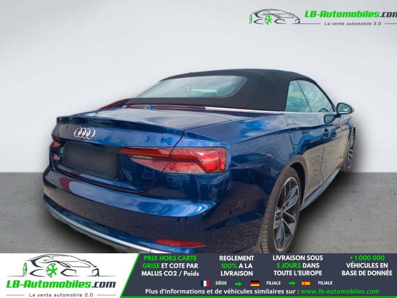 Référence : 1209885 Vos Avantages chez LB-AUTOMOBILES.com / Prix affiché TTC Livré hors carte grise / Livraison sous 10 jours dans toute la France hors 31 / Pas d?avance de frais paiement du véhicule 100% à la livraison par virement. Audi S5 Cabriolet Neuf remisée, Audi S5 Cabriolet Occasion Toulouse Beaupuy 31850, Audi S5 Cabriolet Véhicule sorti de réseau collaborateur, Audi S5 Cabriolet import, Audi S5 Cabriolet importateur, Audi S5 Cabriolet Livraison possible dans toute la France sous 5 jours, Audi S5 Cabriolet, Audi S5 Cabriolet Location Option Achat, Audi S5 Cabriolet LLD, Audi S5 Cabriolet Longue Durée, Audi S5 Cabriolet TVA récupérable. Possibilité d'extension de garantie 12, 24,36 mois, Pour tout autres voitures import neufs ou occasions collaborateur fortement remisée, Mandataire Audi, Mandataire BMW, Mandataire Volkswagen, Mandataire Mercedes, Mandataire Peugeot Espagne, Mandataire Renault Espagne, Porsche import, Mandataire Citroën Espagne, Mandataire Seat Espagne, n'hésitez pas à nous contacter. « Sous réserve de vente préalable et erreur de saisie » Principaux équipements : - 4x4 - ABS - Accoudoir - Android Auto - Antidémarrage - Apple CarPlay - Assistance au freinage d'urgence - Assistance de démarrage en côte - Assistant d'angle mort - Bluetooth - Capteur de lumière - Chargement par induction pour smartphones - Cockpit numérique - Contrôle de la pression des pneus - Direction assistée - ESP - Feux de jour - GPS - Hayon électrique - Isofix - Jantes alliage - Kit mains libres - Lecteur CD - Ordinateur de bord - Pack sport - Phares LED - Pneus été - Port USB - Réglage électrique des sièges - Réglage électrique des sièges avec fonction mémoire - Régulateur de vitesse - Rétroviseur extérieur électrique - Sièges chauffants - Sièges sport - Suspension sport - Système antipatinage - Système d'alarme - Système d'appel d'urgence - Système de détection de la fatigue - Système de nettoyage des phares - Système de sonorisation - Système Stop & Start - Tuner/radio - Vitres électriques - Volant en cuir - Volant multifonction