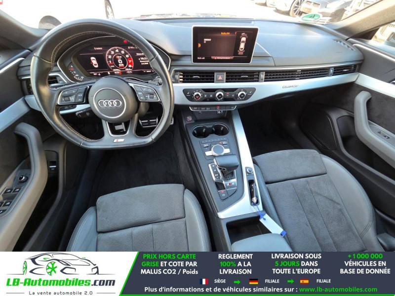 Référence : 1209890 Vos Avantages chez LB-AUTOMOBILES.com / Prix affiché TTC Livré hors carte grise / Livraison sous 10 jours dans toute la France hors 31 / Pas d?avance de frais paiement du véhicule 100% à la livraison par virement. Audi S5 Sportback Neuf remisée, Audi S5 Sportback Occasion Toulouse Beaupuy 31850, Audi S5 Sportback Véhicule sorti de réseau collaborateur, Audi S5 Sportback import, Audi S5 Sportback importateur, Audi S5 Sportback Livraison possible dans toute la France sous 5 jours, Audi S5 Sportback, Audi S5 Sportback Location Option Achat, Audi S5 Sportback LLD, Audi S5 Sportback Longue Durée, Audi S5 Sportback TVA récupérable. Possibilité d'extension de garantie 12, 24,36 mois, Pour tout autres voitures import neufs ou occasions collaborateur fortement remisée, Mandataire Audi, Mandataire BMW, Mandataire Volkswagen, Mandataire Mercedes, Mandataire Peugeot Espagne, Mandataire Renault Espagne, Porsche import, Mandataire Citroën Espagne, Mandataire Seat Espagne, n'hésitez pas à nous contacter. « Sous réserve de vente préalable et erreur de saisie » Principaux équipements : - 4x4 - ABS - Accoudoir - Android Auto - Antidémarrage - Apple CarPlay - Assistance de démarrage en côte - Assistant d'angle mort - Assistant feux de route - Avertisseur de franchissement de ligne - Bluetooth - Boîte de vitesses robotisée - Capteur de lumière - Capteur de pluie - Cockpit numérique - Commande vocale - Contrôle de la pression des pneus - Direction assistée - Éclairage adaptatif de virage - Éclairage d'ambiance - Éclairage route non éblouissant - Écran tactile - ESP - Fermeture centralisée - Feux de jour LED - GPS - Grille de protection pour coffre - Hayon électrique - Isofix - Jantes alliage - Kit de réparation d'urgence des pneus - Lecteur CD - Ordinateur de bord - Pack sport - Phare antibrouillard - Pneus hiver - Port USB - Radio DAB - Réglage électrique des sièges - Régulateur de vitesse - Rétroviseur extérieur électrique - Rétroviseur intérieur anti-éblouissement automatique - Rétroviseurs extérieurs rabattables électriquement - Sièges chauffants - Sièges sport - Streaming musical intégré - Suspension adaptative - Suspension sport - Système antipatinage - Système d'alarme - Système d'appel d'urgence - Système d'avertissement de la distance - Système de détection de la fatigue - Système de limitation de la vitesse - Système de nettoyage des phares - Système de reconnaissance des panneaux de signalisation - Système Stop & Start - Tuner/radio - Vitres électriques - Vitres teintées - Volant en cuir - Volant multifonction