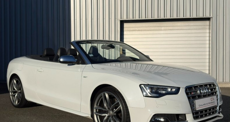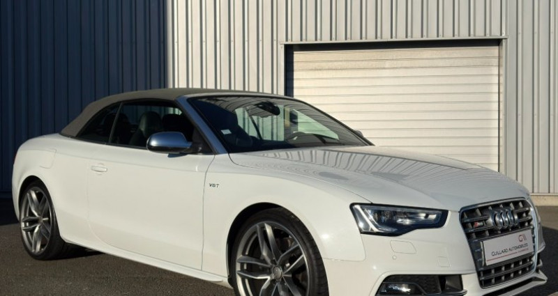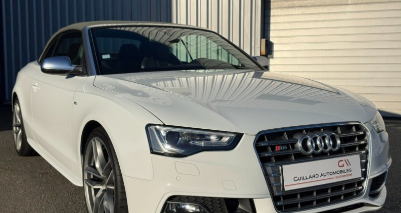 //// GUILLARD AUTOMOBILES VOUS PROPOSE A LA VENTE CETTE TRES BELLE AUDI S5 CABRIOLET 3.0 V6 TFSI 333ch QUATTRO S TRONIC 7 /// // 9385euros D'OPTIONS // -Mise en circulation : 15/06/2015 -Puissance fiscale : 22ch -Couleur extérieur : Blanc Glacier Métallisée (1005euros) *Description du véhicule : -Sellerie cuir nappa fin (1160euros) -Sièges avant sport S électriques à réglages lombaires électriques en cuir noir avec surpiqûres argentées + inscription S5 (785euros) -Sièges chauffants à l'avant -Accoudoirs de portières avant et arrière garnis de cuir de la couleur de la sellerie (305euros) -Volant airbag multifonctions sport 3 branches en cuir avec partie inférieure plate + commandes palettes s tronic (135euros) -Ordinateur de bord -Système Hi-Fi Bang & Olufsen -Adaptative cruise control (régulateur de vitesse adaptatif) (1250euros) -Alerte de survitesse -Audi braking guard -Audi acive Lane assist + Audi side assist (avertisseur de franchissement de ligne et avertisseur d'angle mort (1290euros) -Recommandation de pause -Allumage automatique des feux -Adaptative light : phares directionnels (465euros) -Détecteur de pluie -Climatisation automatique bizone -Réception radio numérique (DAB) intégrée au mmi (405euros) -GPS couleur 16/9ème -2 lecteurs de carte SD -Lecteur de carte SIM -Téléphone de voiture 8w Bluetooth : Bluetooth audio, connexion téléphone mains-libres Bluetooth (715euros) -4 vitres électriques -Rétroviseurs dégivrants et rabattables électriquement -Keyless-Go (ouverture / fermeture des portes et démarrage sans clé -Boîte de vitesse automatique à 7 rapports séquentielle avec palettes au volant -Fonction START & STOP -Audi Drive select ( efficiency / comfort / auto / dynamic / individual ) -Accoudoir central en cuir noir avec surpiqûres argentées -Applications de carbone atlas (365euros) -Ciel de pavillon noir -Capote électriques en tissu gris -Baguettes de seuils de portes en alu avec inscription S5 -Tapis de sol velours -Pédalier / repose pied sport en acier inoxydable -Parking system advanced : assistance de parking avant et arrière, caméra de recul (485euros) -LED de jour -Phares bi-xénon -Antibrouillards -Jantes alu 20 -Etriers de freins noirs avec inscription S5 -Amortissement piloté (1020euros) Entretien suivi à jour. Véhicule en excellent état. Véhicule révisé et garanti 6 mois (Extension possible de la garantie 12 ou 24 mois). // REPRISE POSSIBLE DE VOTRE VEHICULE // // TOUS NOS VEHICULES SONT VISIBLES SUR RENDEZ-VOUS A PLEUMELEUC // SARL GUILLARD AUTOMOBILES 6 RUE LAENNEC 35137 PLEUMELEUC // HORAIRES D'OUVERTURE SEULEMENT SUR RENDEZ-VOUS //: -DU LUNDI au VENDREDI : 9h00-12h00 14h00-18h00 -LE SAMEDI : 9h00-12h00