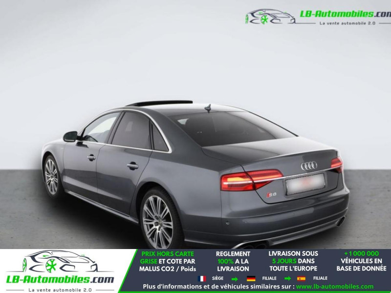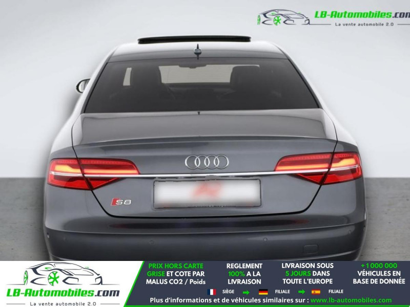 Référence : 1173772 Vos Avantages chez LB-AUTOMOBILES.com / Prix affiché TTC Livré hors carte grise / Livraison sous 10 jours dans toute la France hors 31 / Pas d?avance de frais paiement du véhicule 100% à la livraison par virement. Audi S8 Neuf remisée, Audi S8 Occasion Toulouse Beaupuy 31850, Audi S8 Véhicule sorti de réseau collaborateur, Audi S8 import, Audi S8 importateur, Audi S8 Livraison possible dans toute la France sous 5 jours, Audi S8, Audi S8 Location Option Achat, Audi S8 LLD, Audi S8 Longue Durée, Audi S8 TVA récupérable. Possibilité d'extension de garantie 12, 24,36 mois, Pour tout autres voitures import neufs ou occasions collaborateur fortement remisée, Mandataire Audi, Mandataire BMW, Mandataire Volkswagen, Mandataire Mercedes, Mandataire Peugeot Espagne, Mandataire Renault Espagne, Porsche import, Mandataire Citroën Espagne, Mandataire Seat Espagne, n'hésitez pas à nous contacter. « Sous réserve de vente préalable et erreur de saisie » Principaux équipements : - 4x4 - ABS - Accoudoir - Affichage tête haute - Antidémarrage - Assistance au freinage d'urgence - Assistance de démarrage en côte - Assistant d'angle mort - Assistant de vision nocturne - Assistant feux de route - Avertisseur de franchissement de ligne - Bluetooth - Boîte de vitesses robotisée - Capteur de lumière - Capteur de pluie - Carnet d'entretien - Chauffage auxiliaire - Commande vocale - Contrôle de la pression des pneus - Direction assistée - Éclairage d'ambiance - Éclairage route non éblouissant - Écran tactile - ESP - Fermeture centralisée - Feux de jour LED - Garantie - GPS - Hayon électrique - Isofix - Jantes alliage - Kit mains libres - Lecteur CD - Ordinateur de bord - Pack sport - Phare antibrouillard - Phares LED - Port USB - Réglage électrique des sièges - Réglage électrique des sièges avec fonction mémoire - Régulateur de vitesse adaptatif - Rétroviseur extérieur électrique - Rétroviseur intérieur anti-éblouissement automatique - Sièges arrières chauffants électriques - Sièges chauffants - Sièges sport - Streaming musical intégré - Support lombaire - Suspension pneumatique - Suspension sport - Système antipatinage - Système d'alarme - Système d'avertissement de la distance - Système de limitation de la vitesse - Système de nettoyage des phares - Système de reconnaissance des panneaux de signalisation - Système de sonorisation - Système Stop & Start - Toit ouvrant - Tuner/radio - Véhicule non-fumeur - Verrouillage centralisé sans clé - Vitre chauffante - Vitres électriques - Vitres teintées - Volant chauffant - Volant en cuir - Volant multifonction